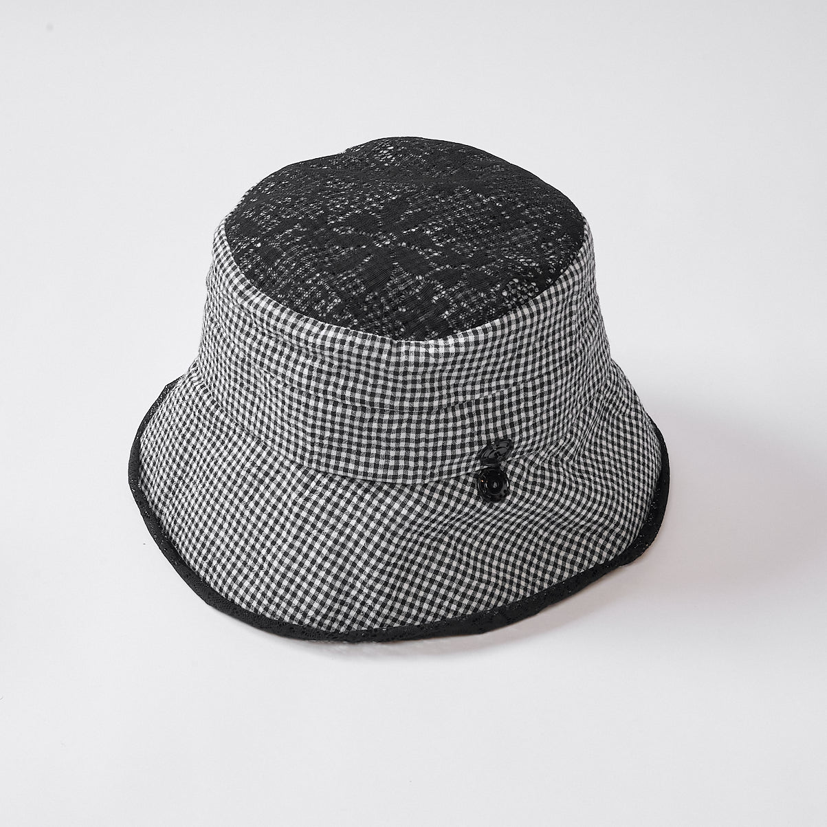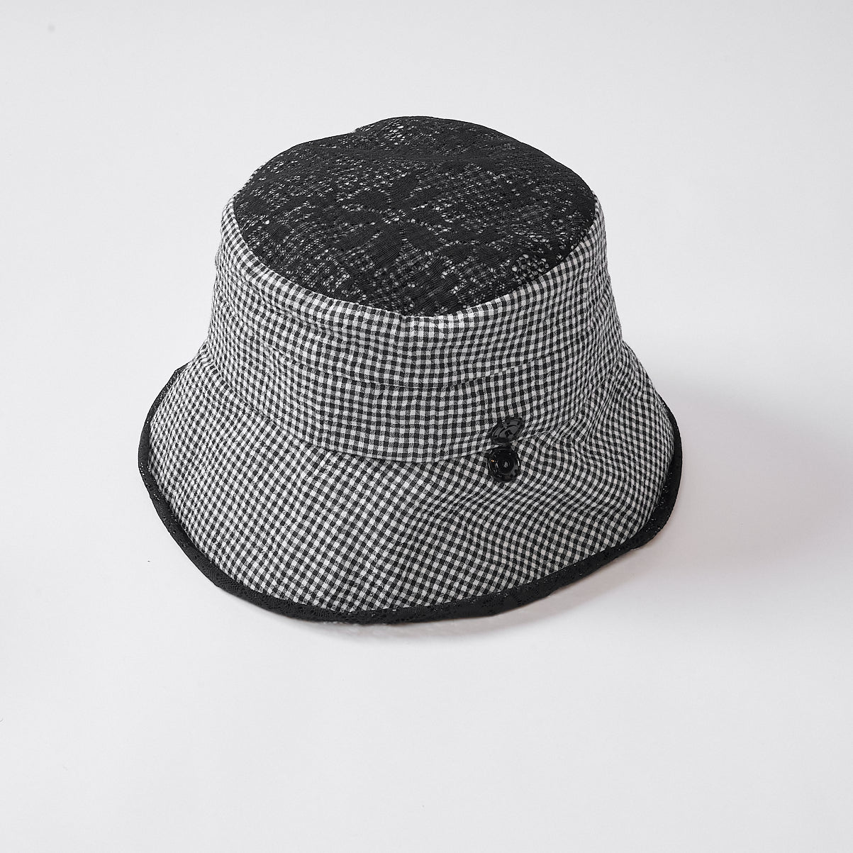 A crochet made from cotton linen voile washed gingham and lace fabric.