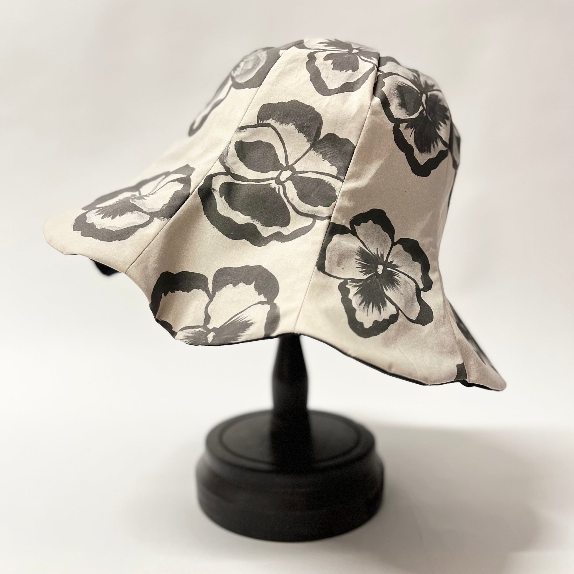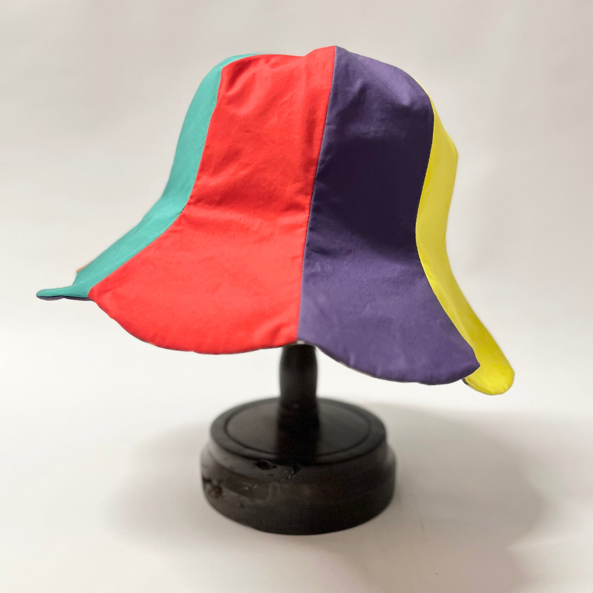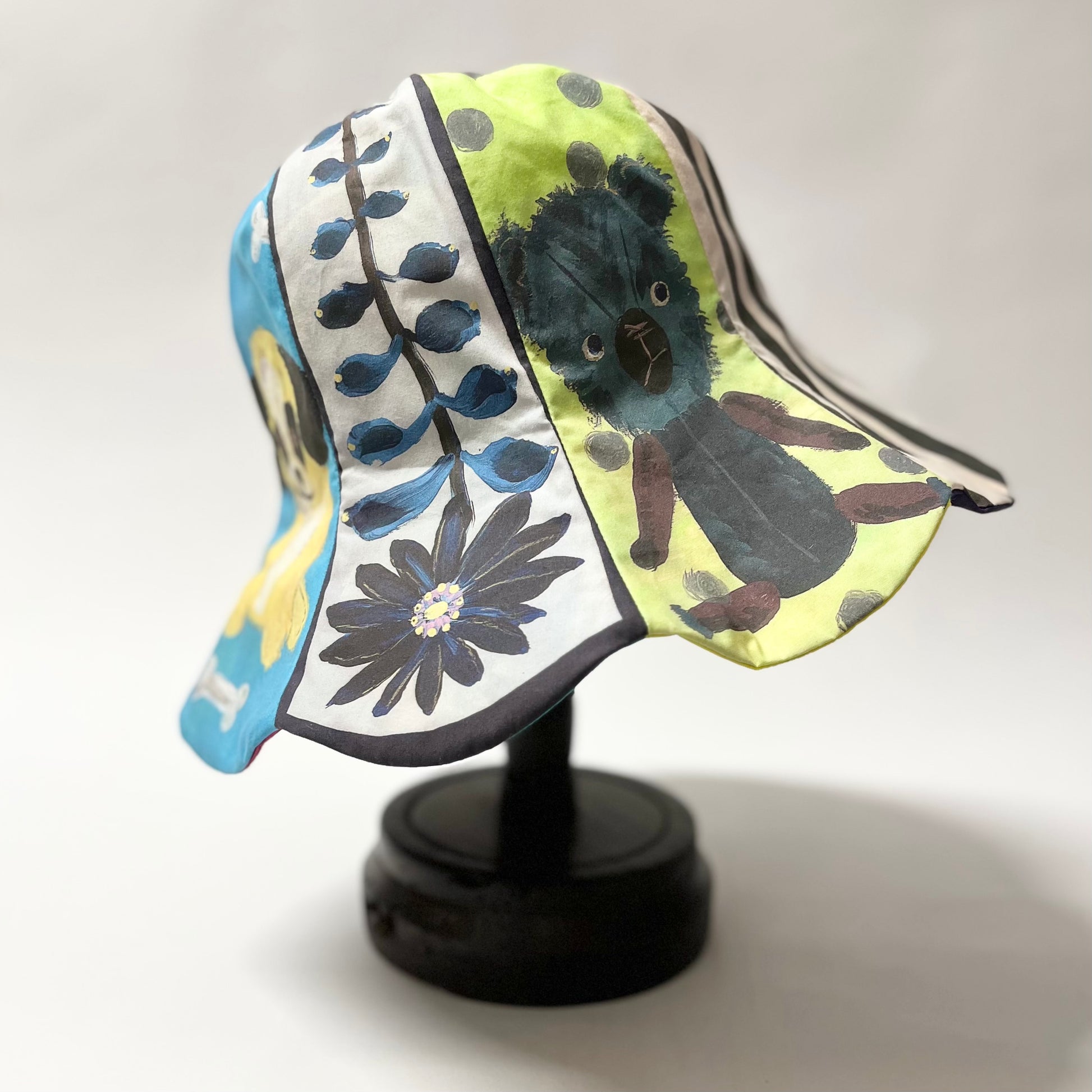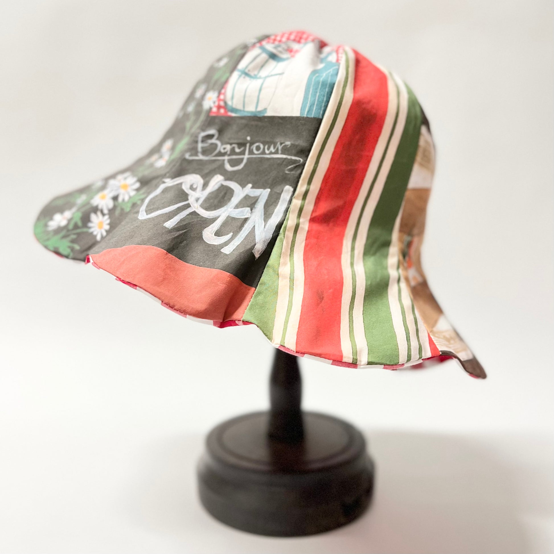 オリジナルプリント生地を使用して仕立てたチューリップハット。