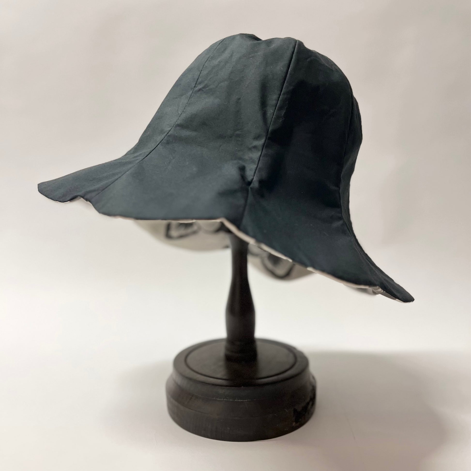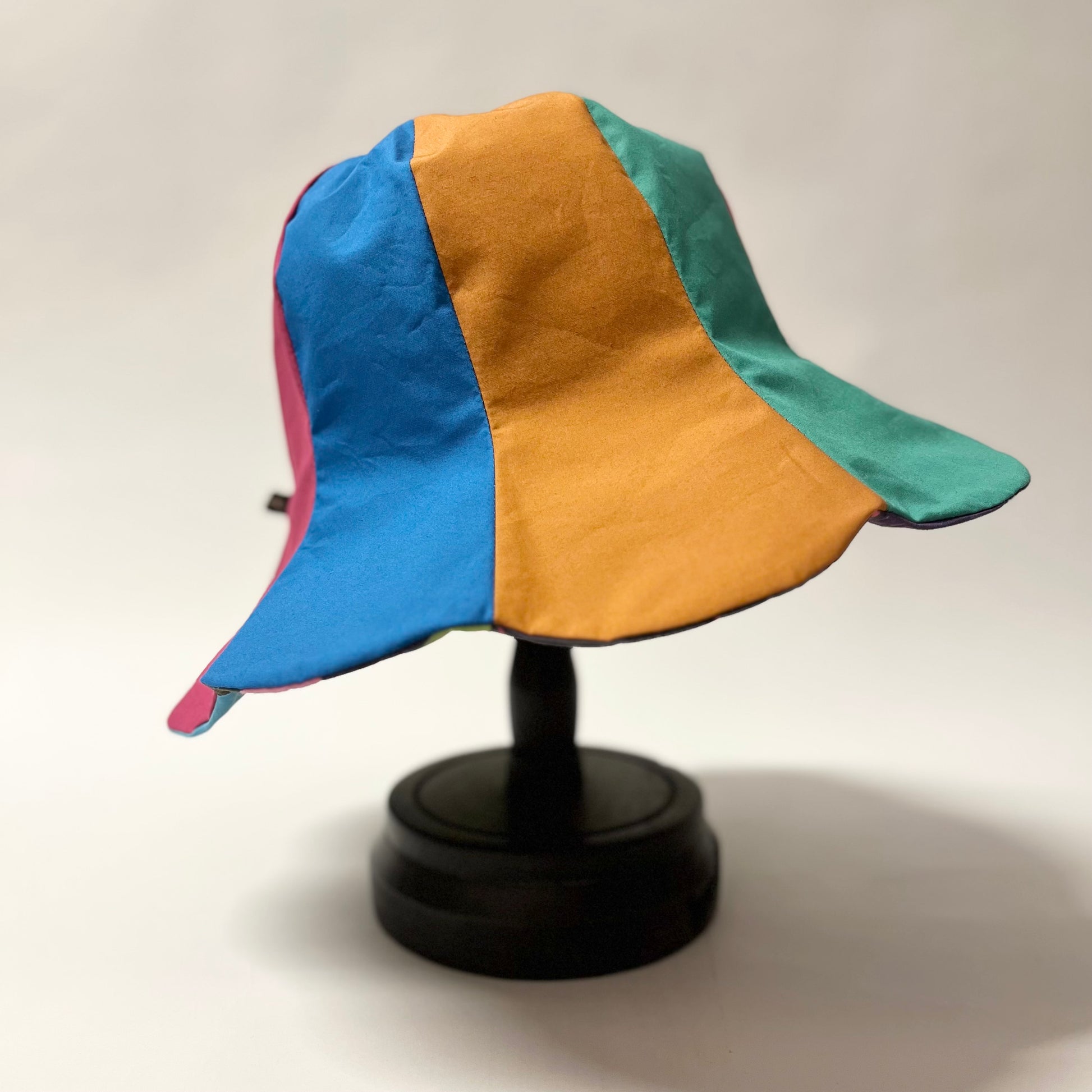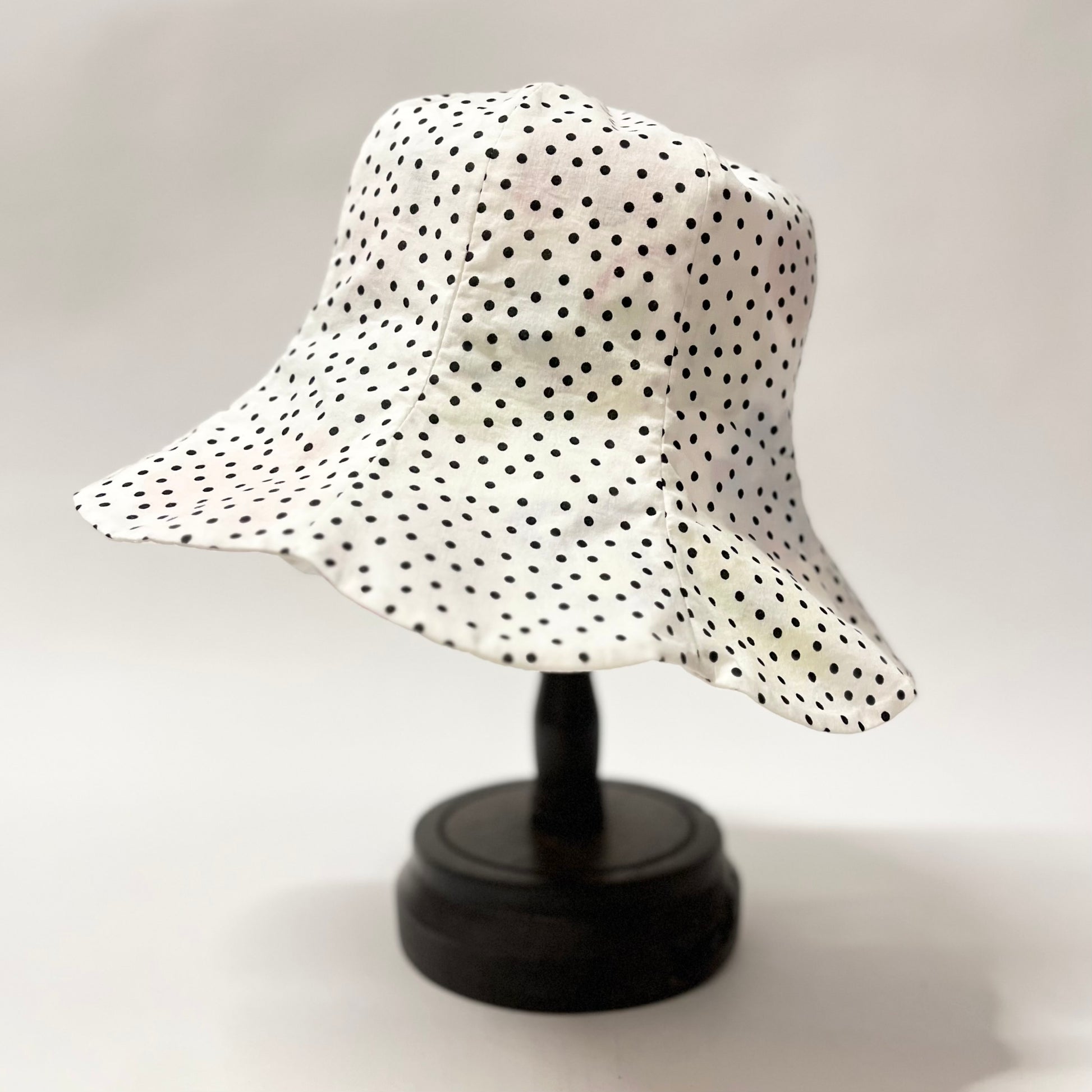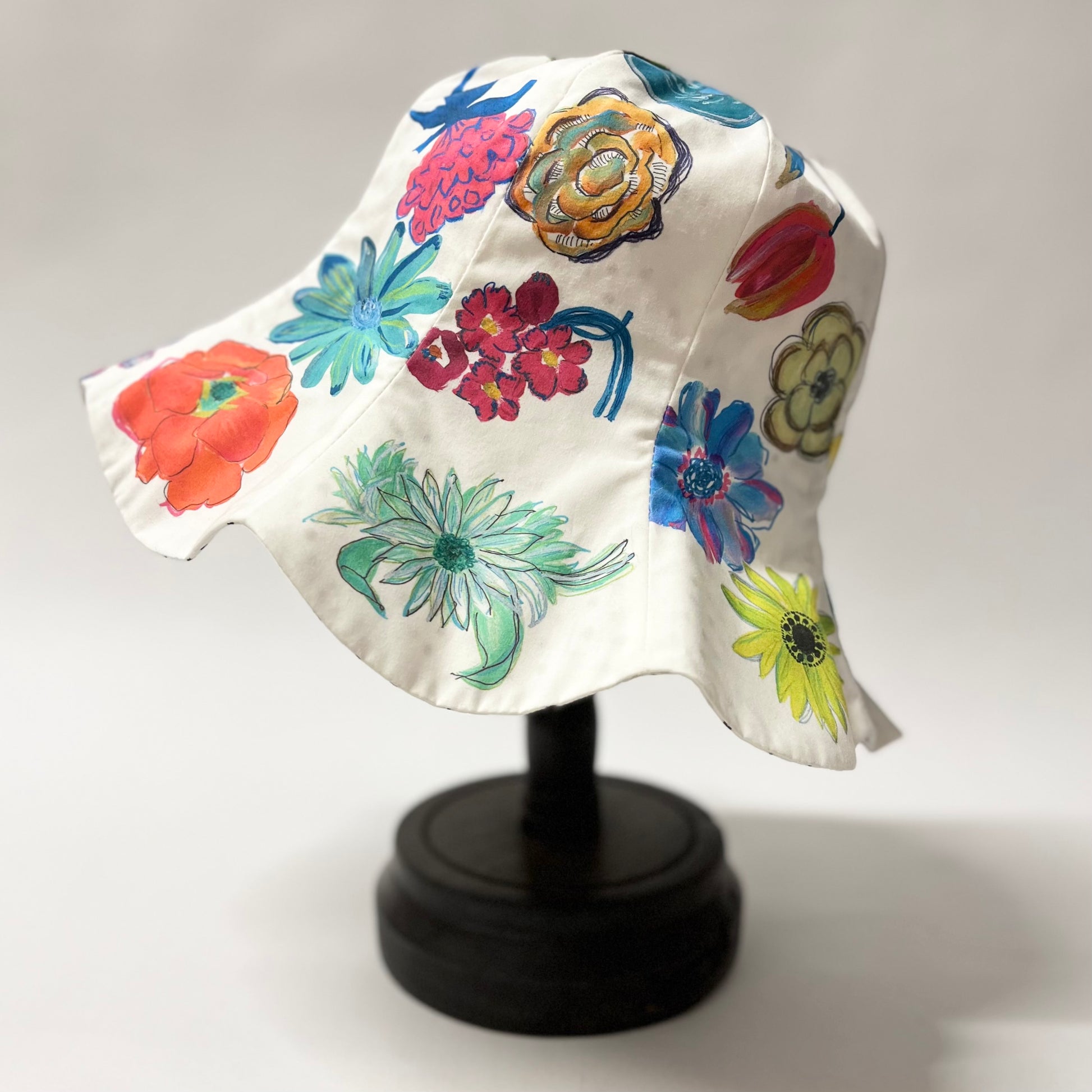 オリジナルプリント生地を使用して仕立てたチューリップハット。