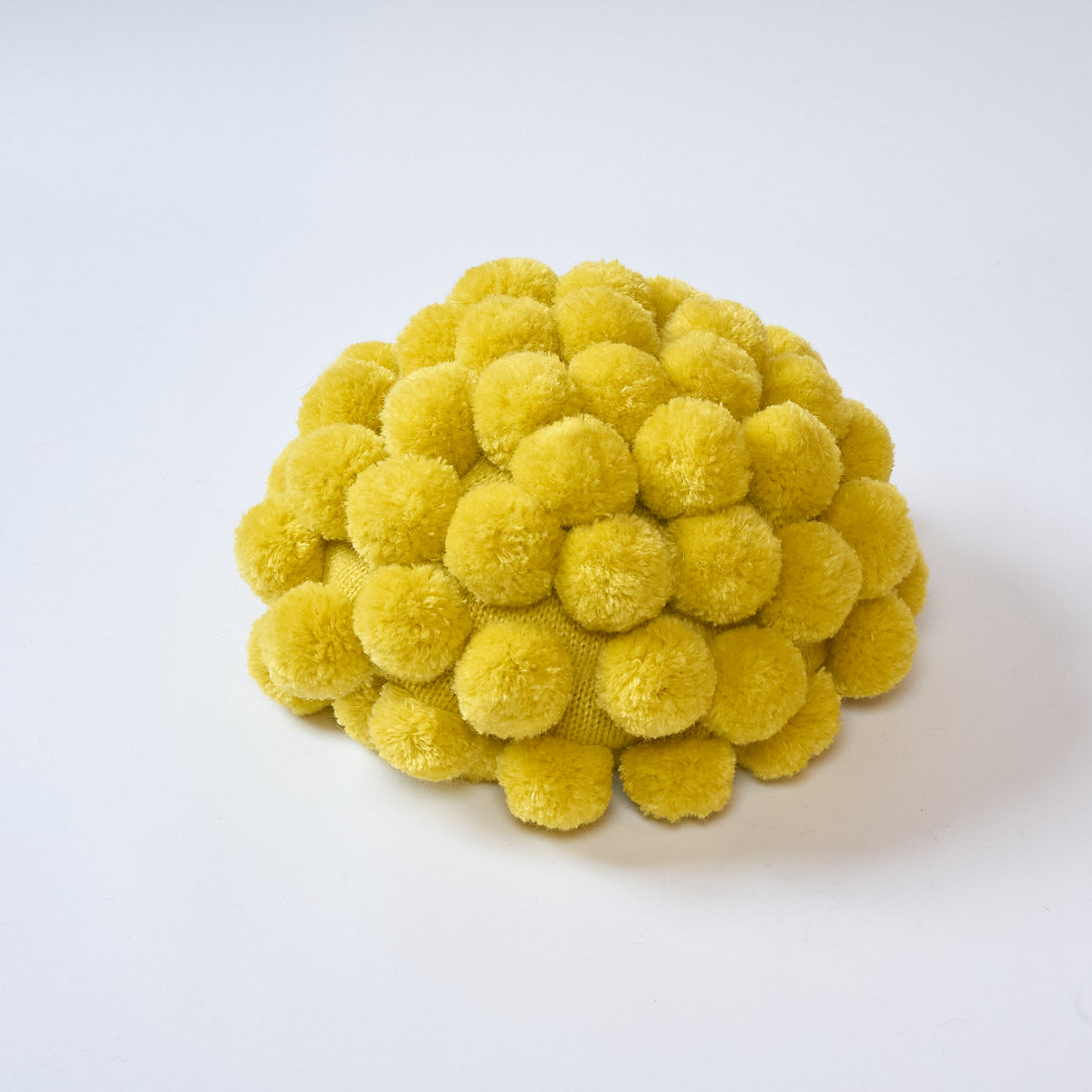 60 pompoms are randomly attached to the knitted hat to create the ultimate luxurious knit cap for adults.