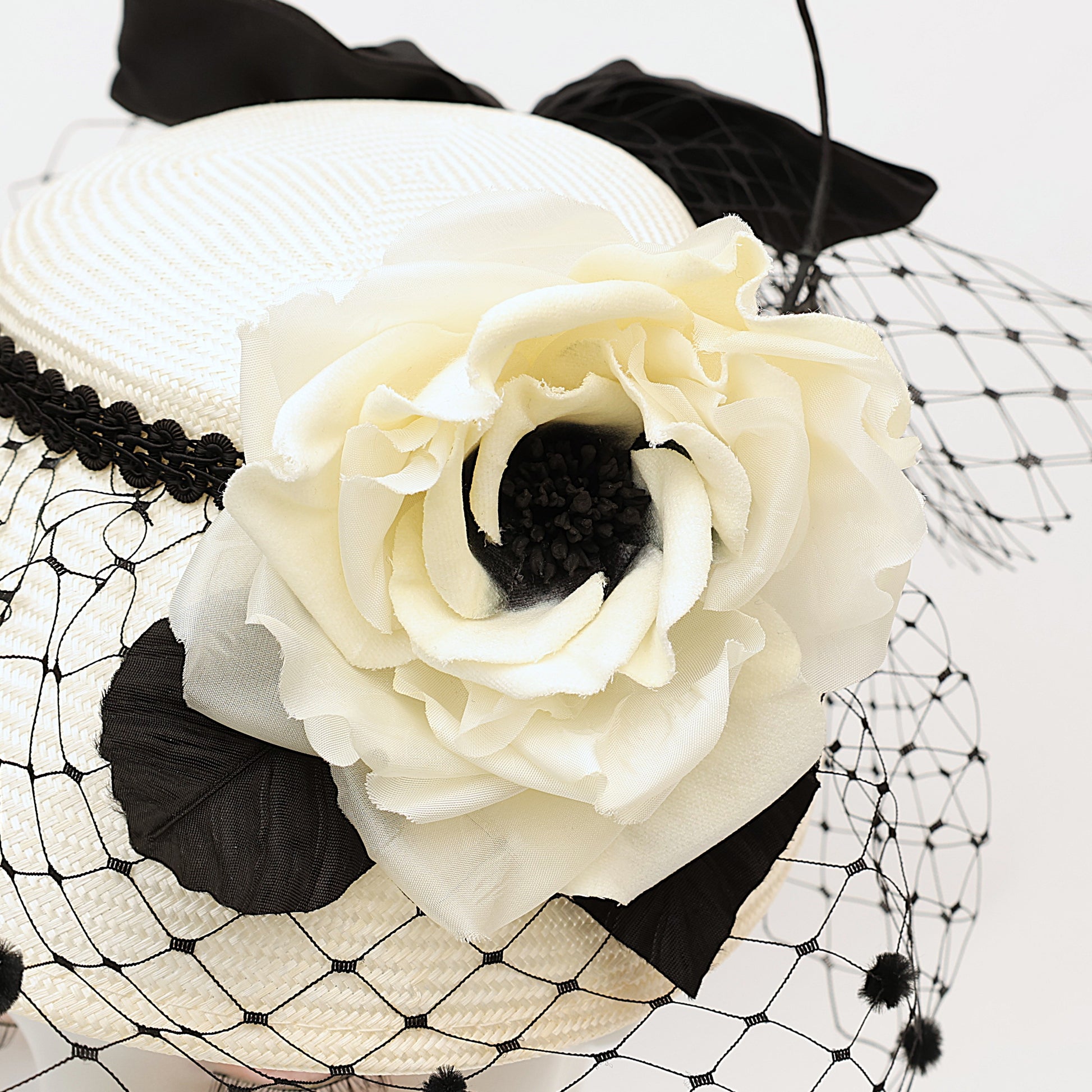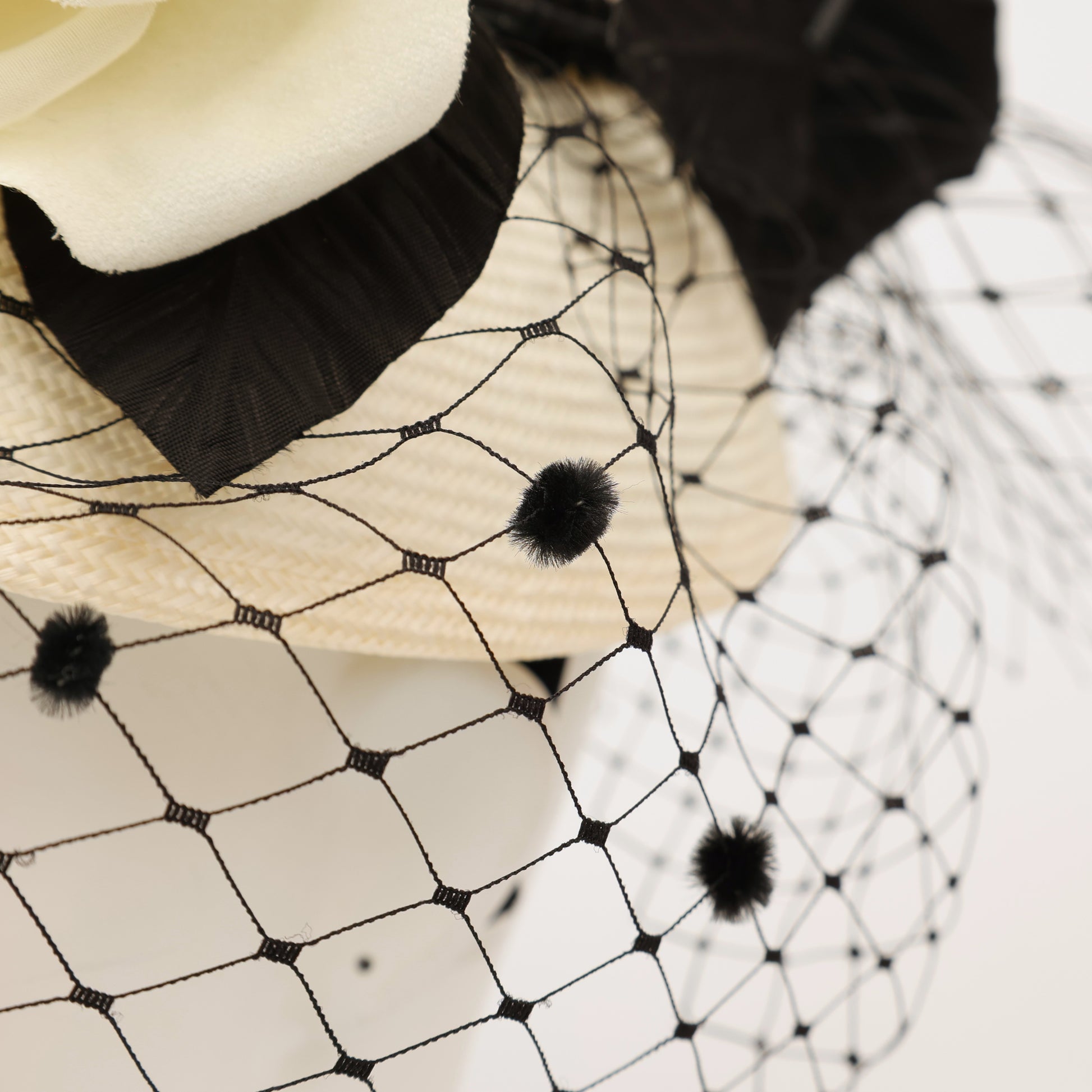 大きなチュールをあしらうことで小顔効果もあり、様々な年齢層の方に被っていただきやすいデザインです。