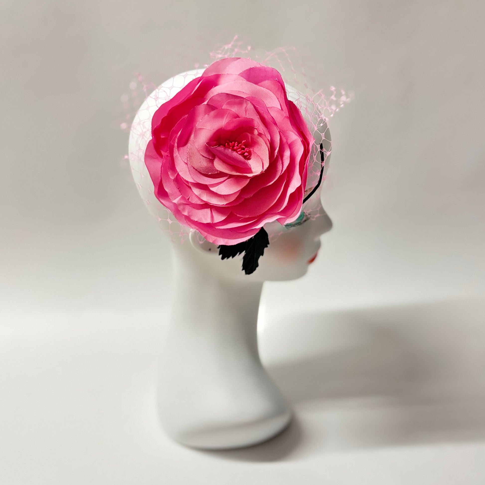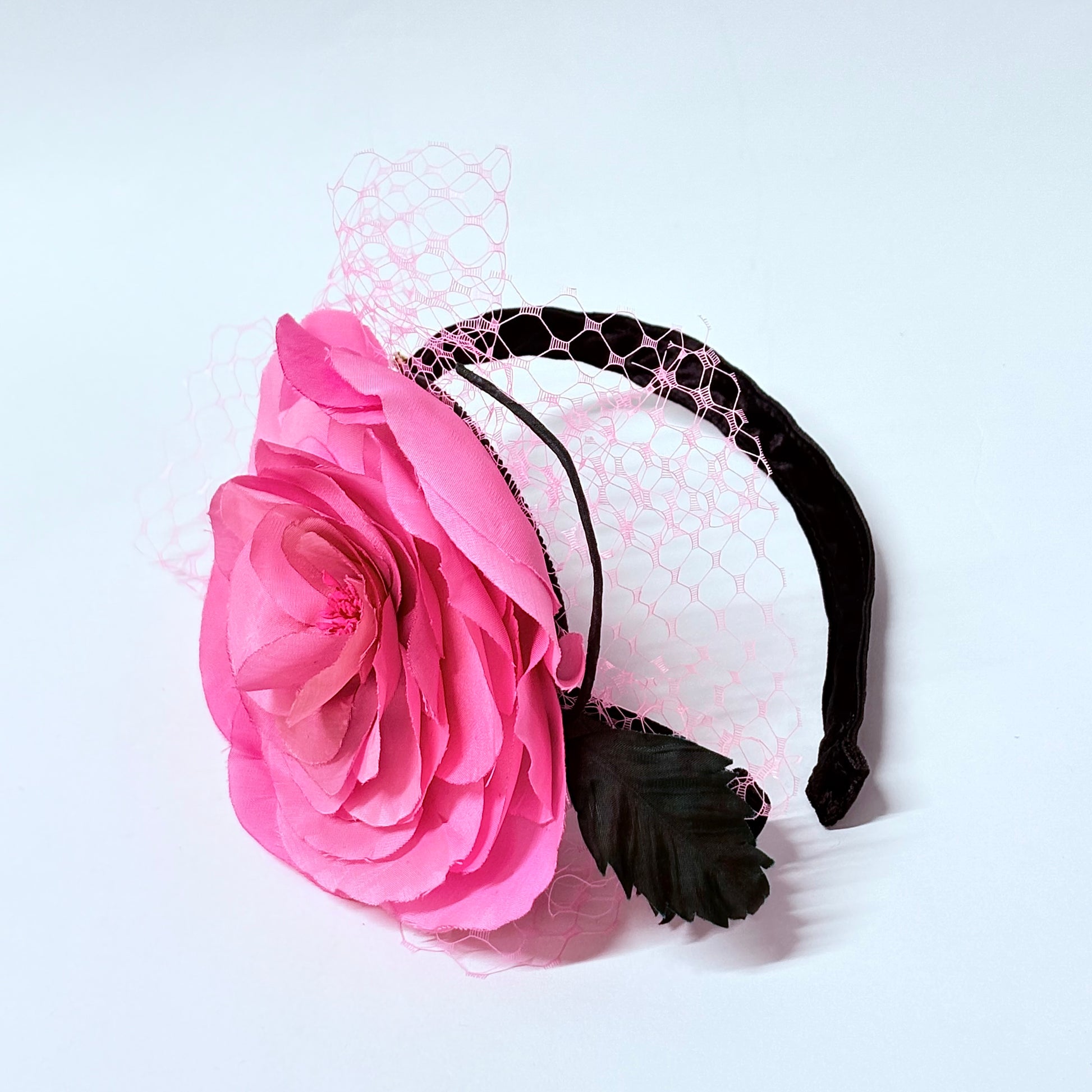 熟練した造花職人が一つひとつ丁寧に仕上げた大輪のバラが際立つカチューシャ。