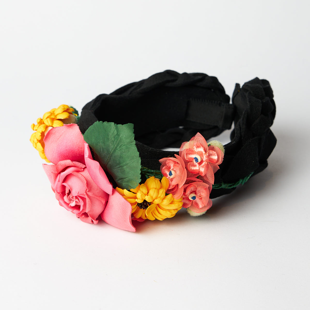An artificial flower headdress inspired by Frida Kahlo's paintings.