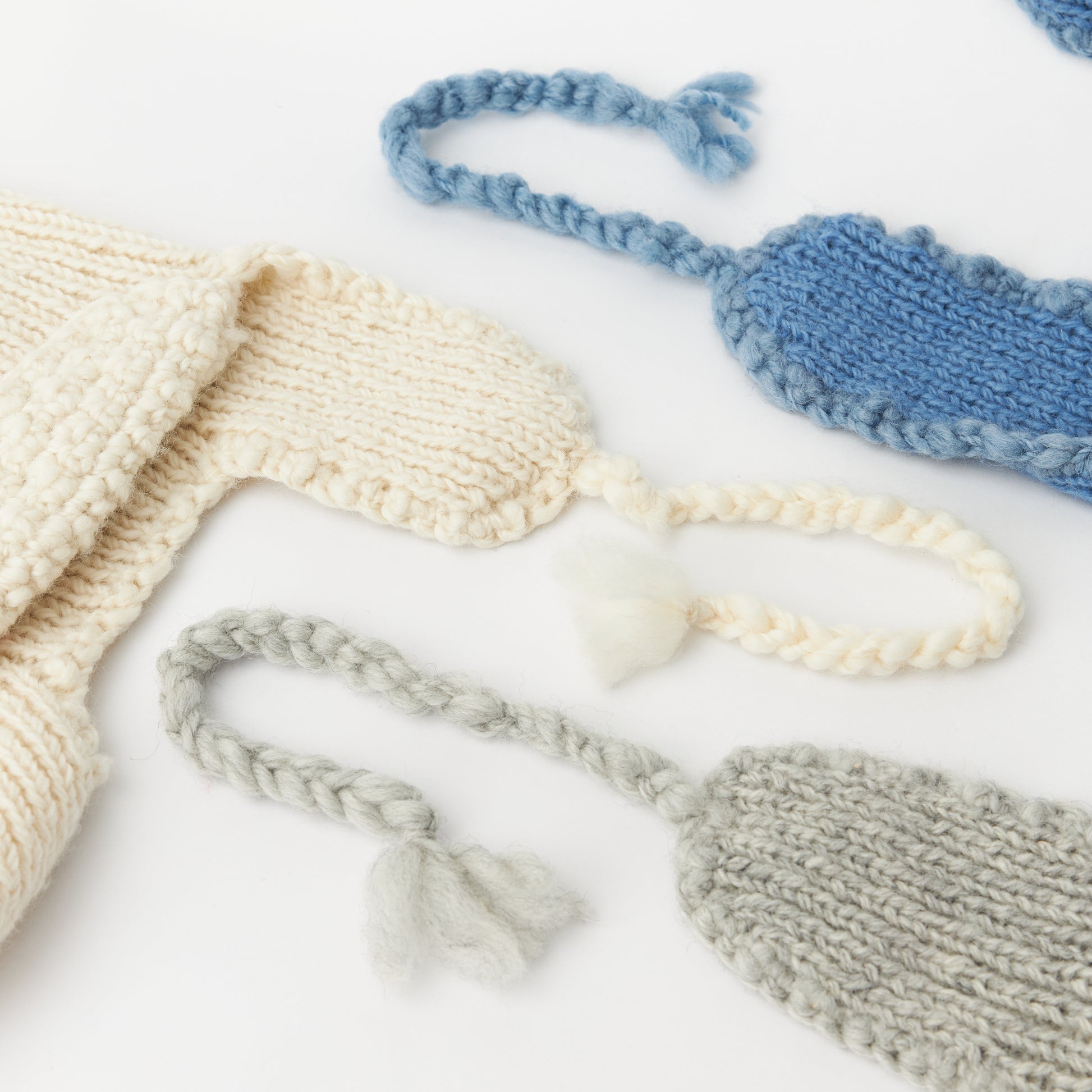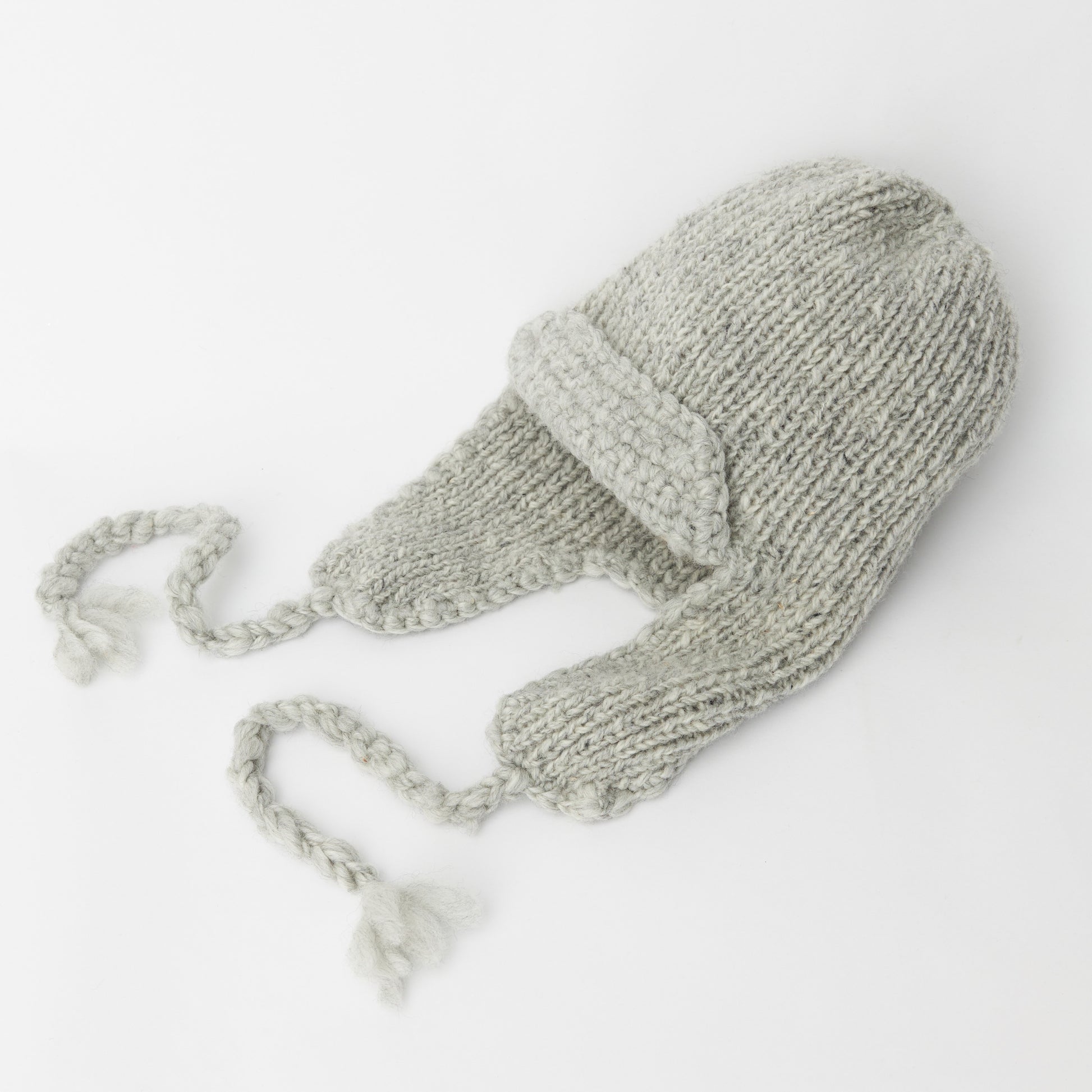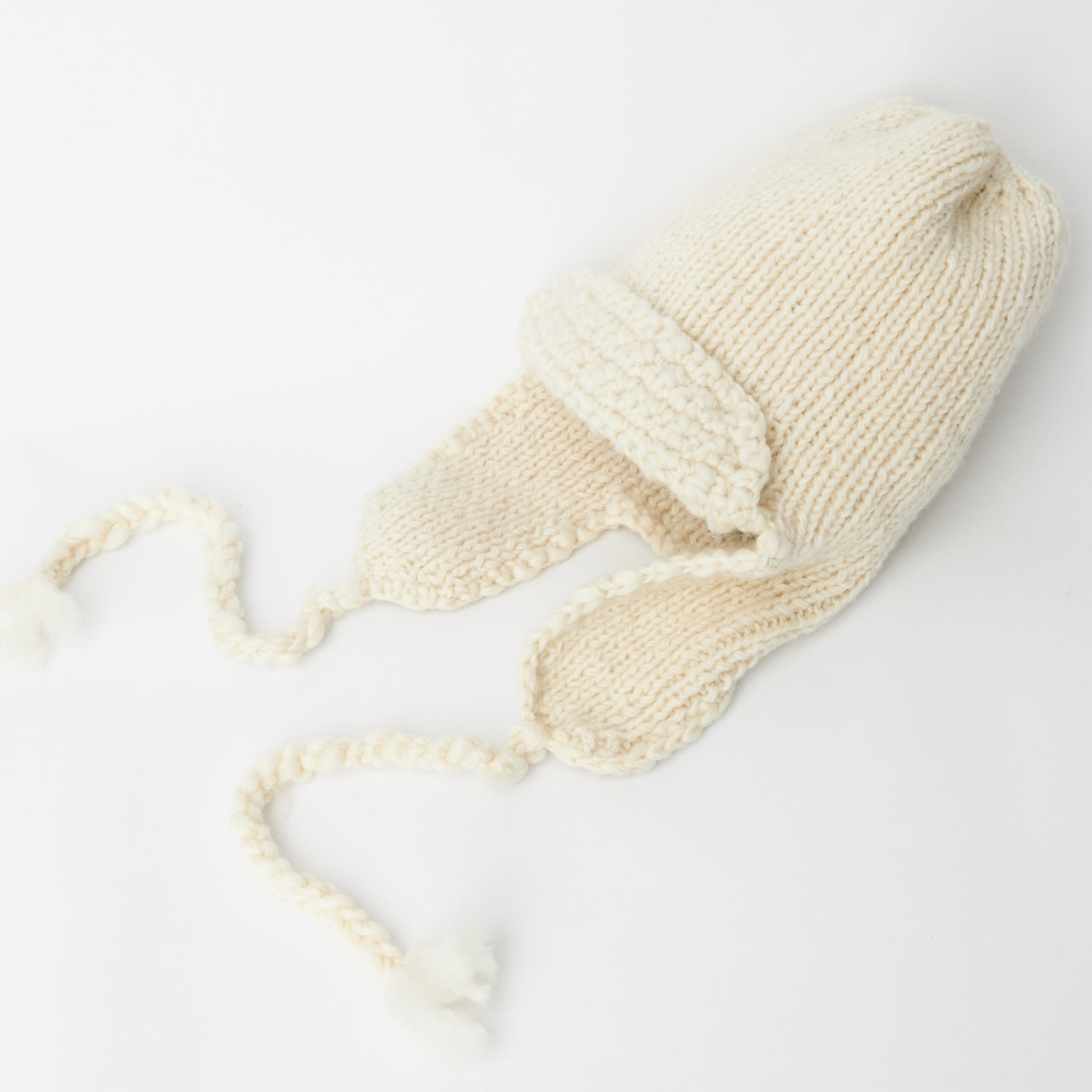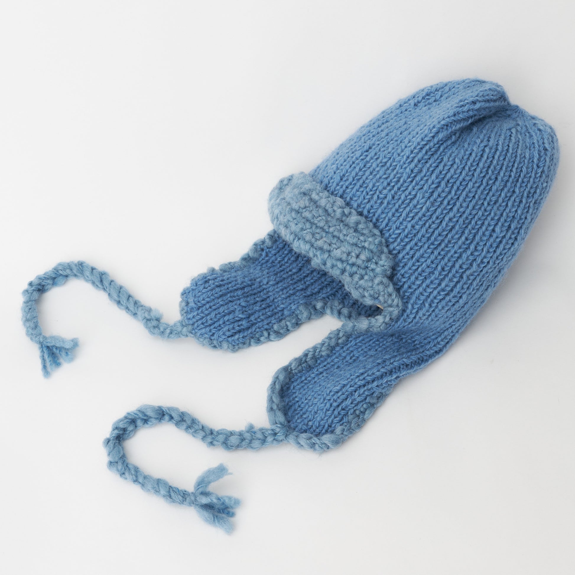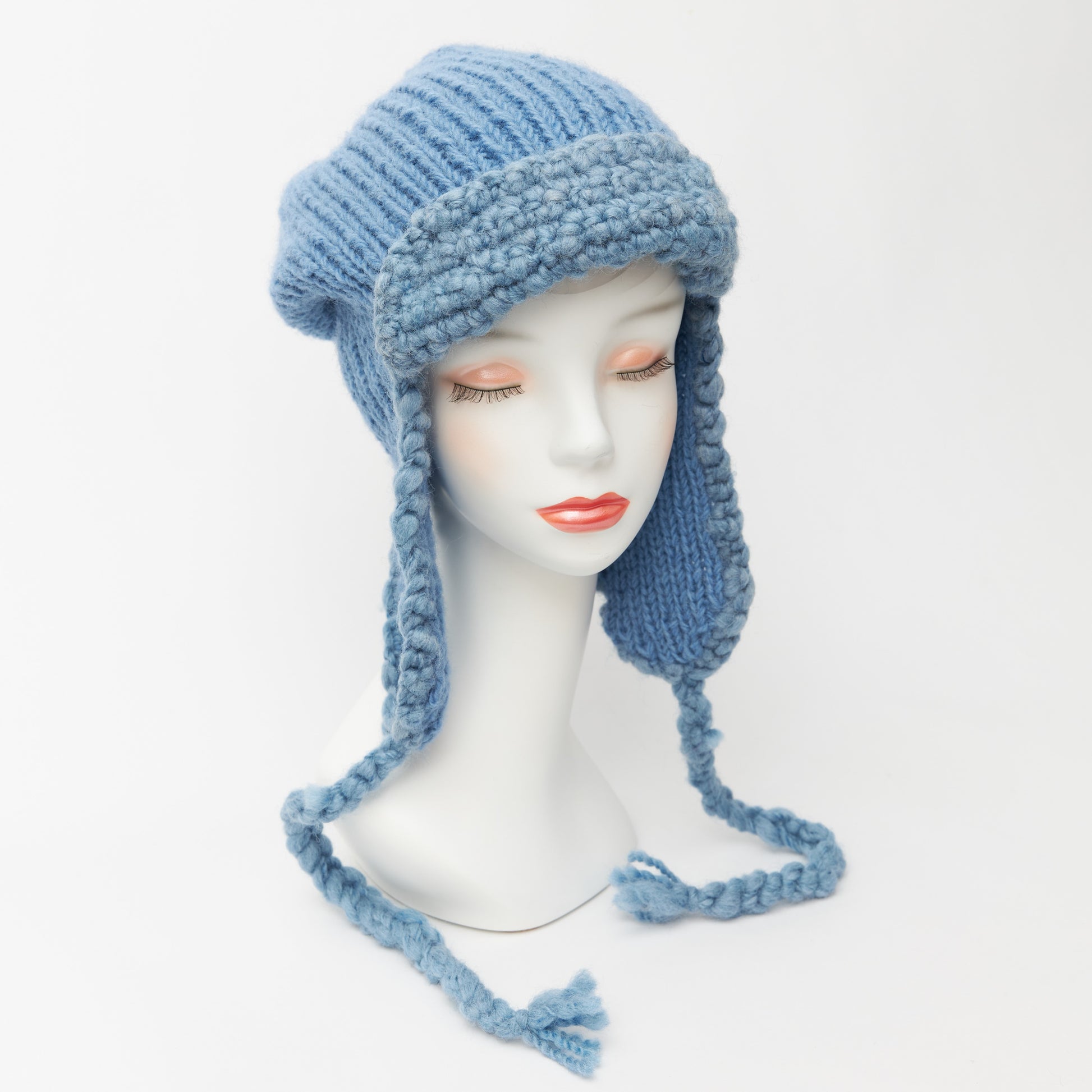 二種類の毛糸でしっかりと丁寧に編んだ温かさ抜群の帽子です 耳当ては共糸の紐を頭の上で結ぶ事により上げ下げ出来ます。 コーディネートを選ばずクールなスタイリングを楽しめます