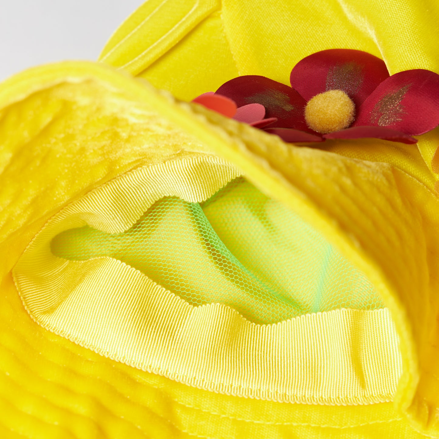 ベーシックなデザインながら、生地にタックを寄せたり、ポップな色目のベルベット素材を使い、カクテルとクロシェ、どちらでも楽しめるようなデザインでニュアンスがでるように製作しました。