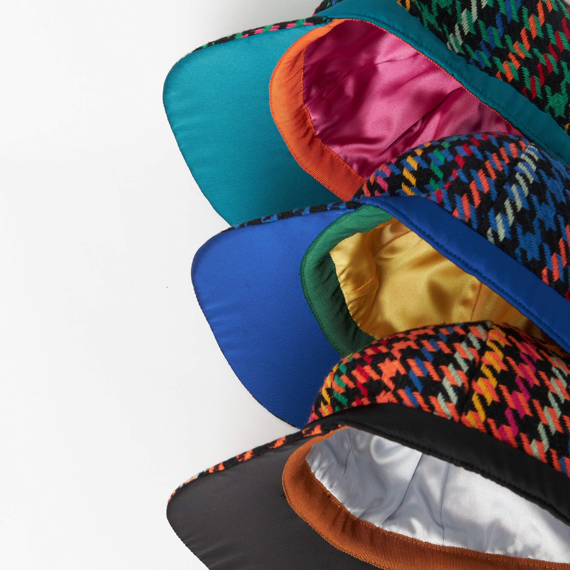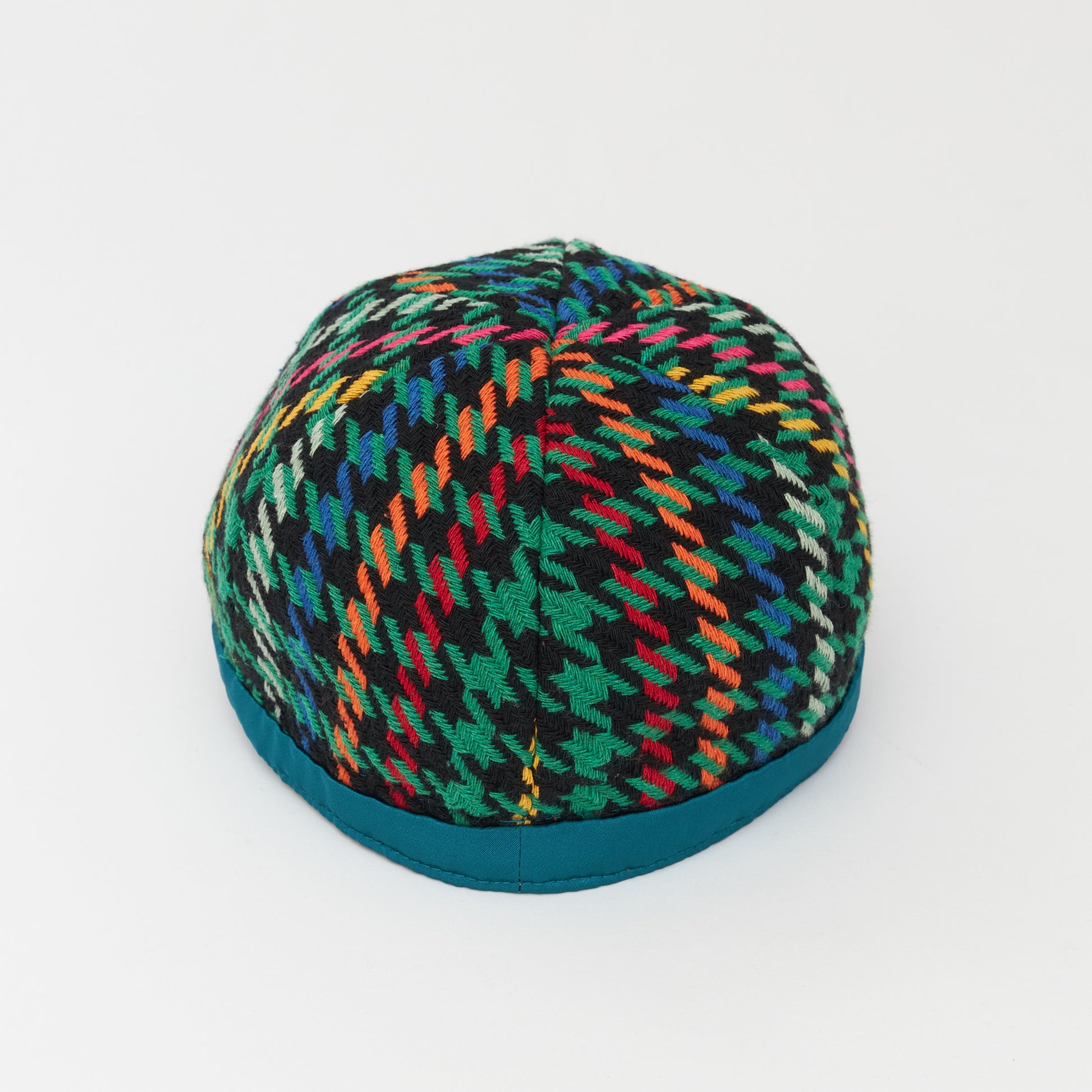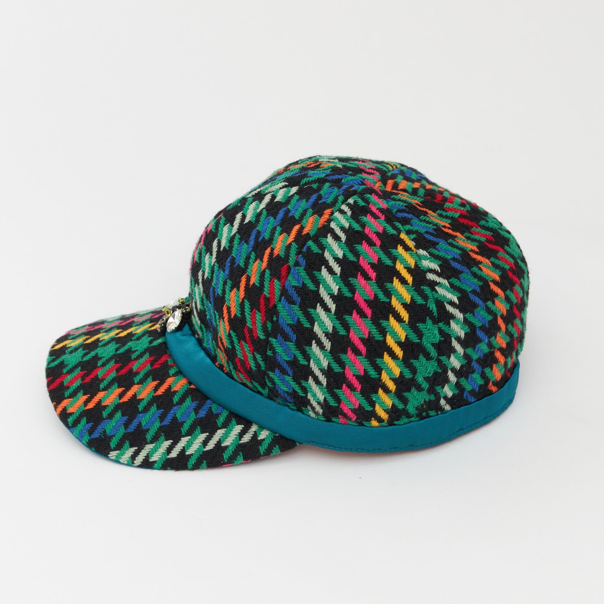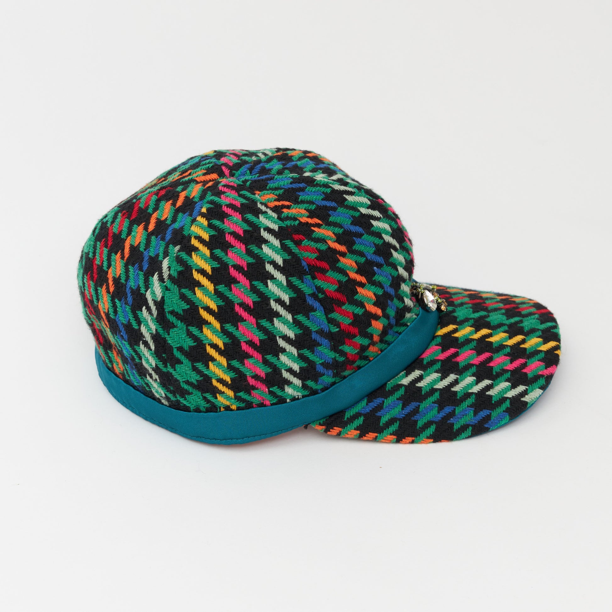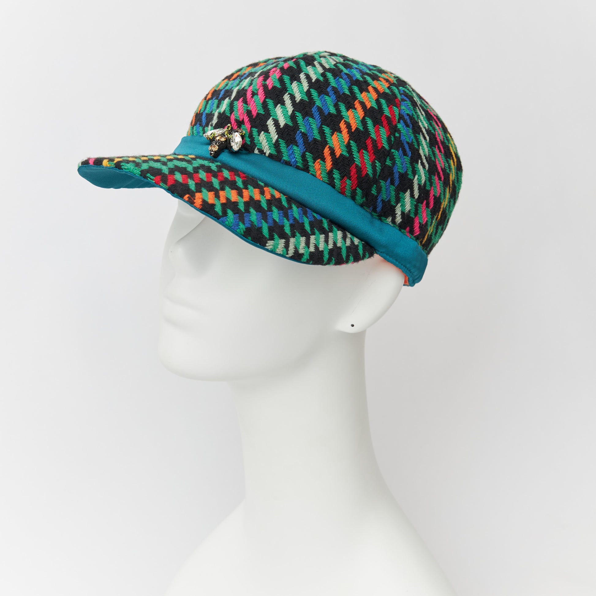 めずらしい杉綾柄の生地を使いキャップを製作しました。だいたんな柄ながらベーシックなフォルムで日常的に使いやすい帽子です。どの年代でもかぶれるようなデザインにしました。モチーフの蜂は幸運の象徴です。