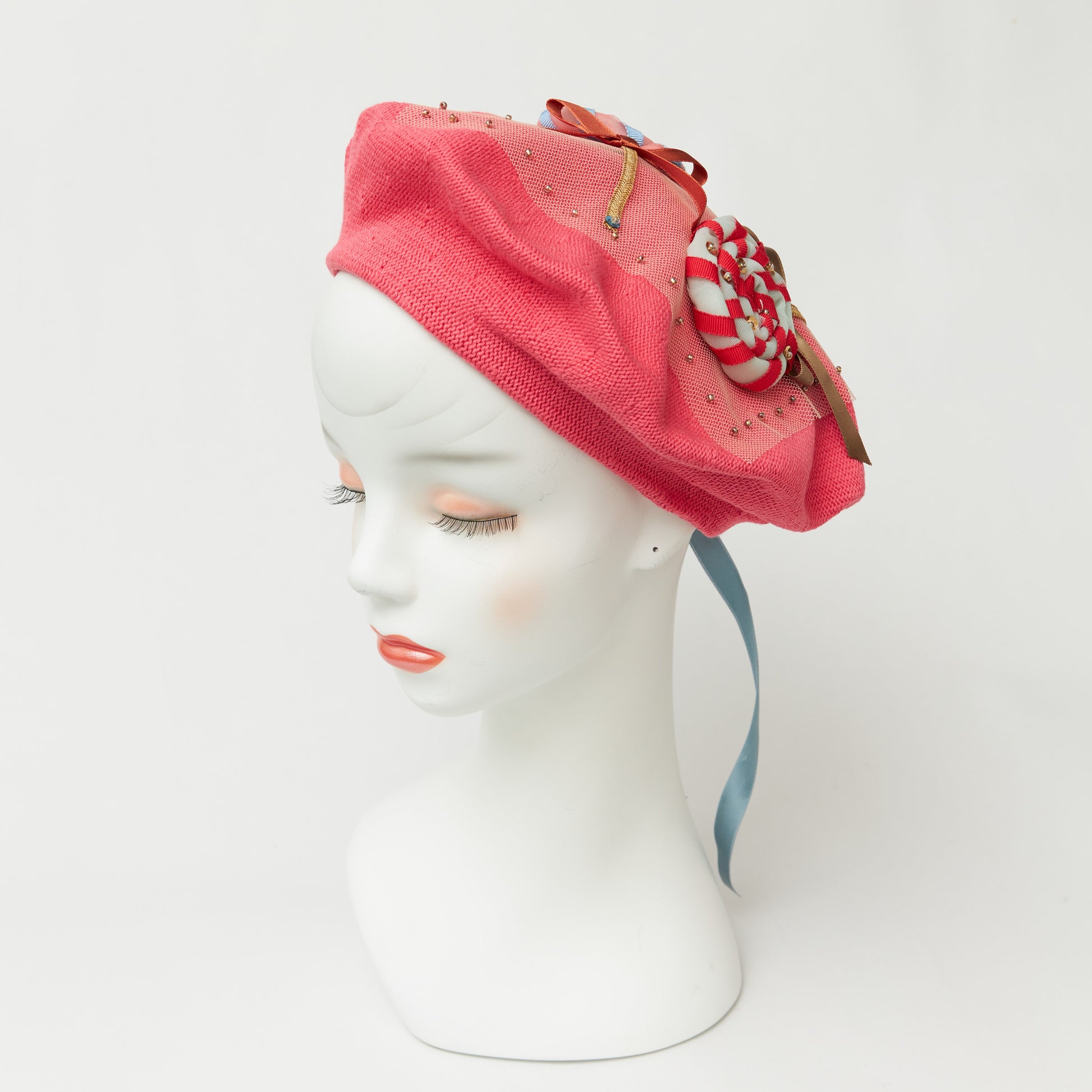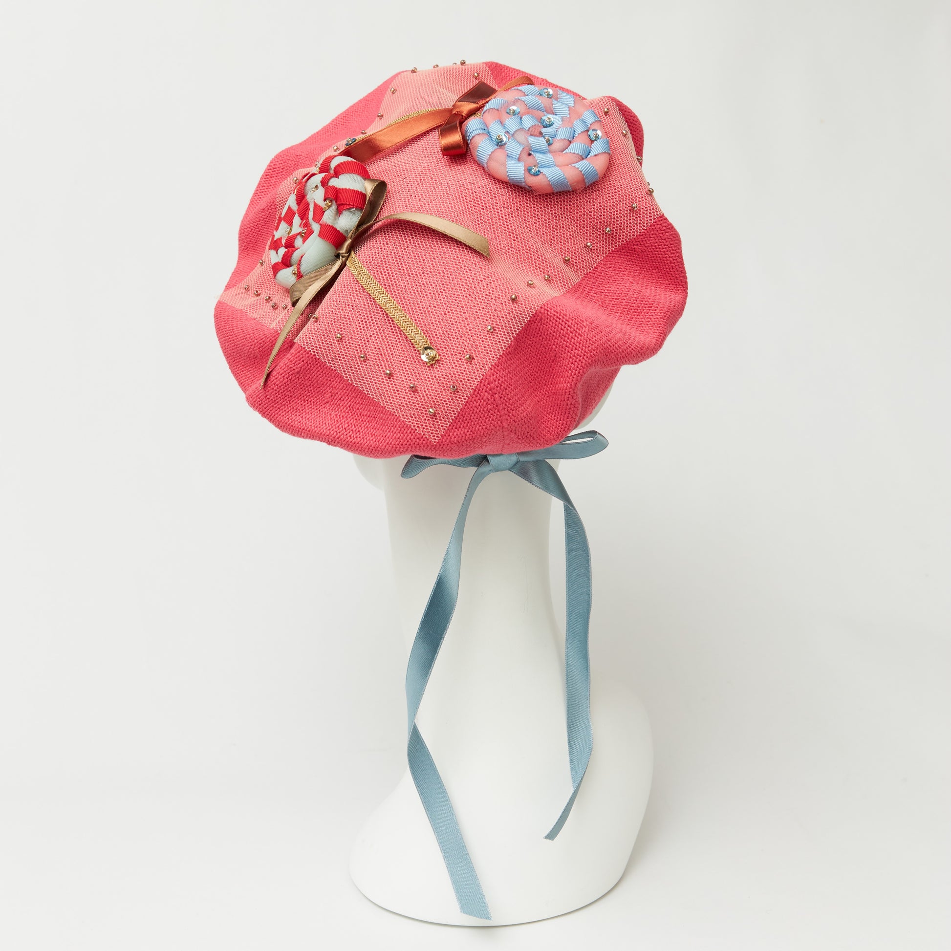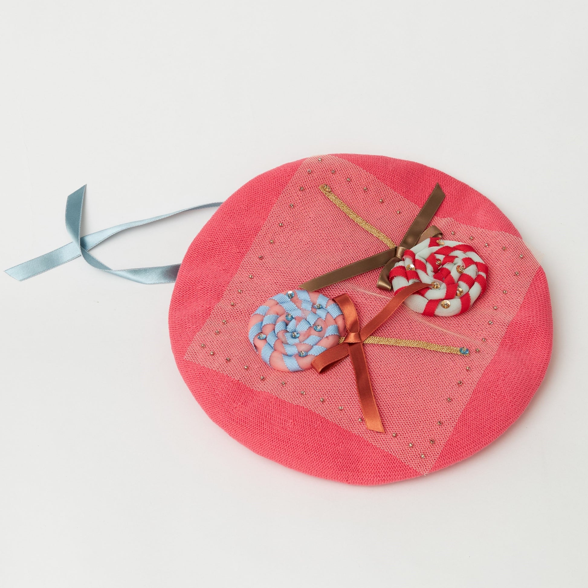 フランスのパティスリーのショーケースに並んでいたらかわいいキャンディーをあしらったベレー。被っている方も見る方も思わずふふふ♪となる遊び心のあるベレーです。