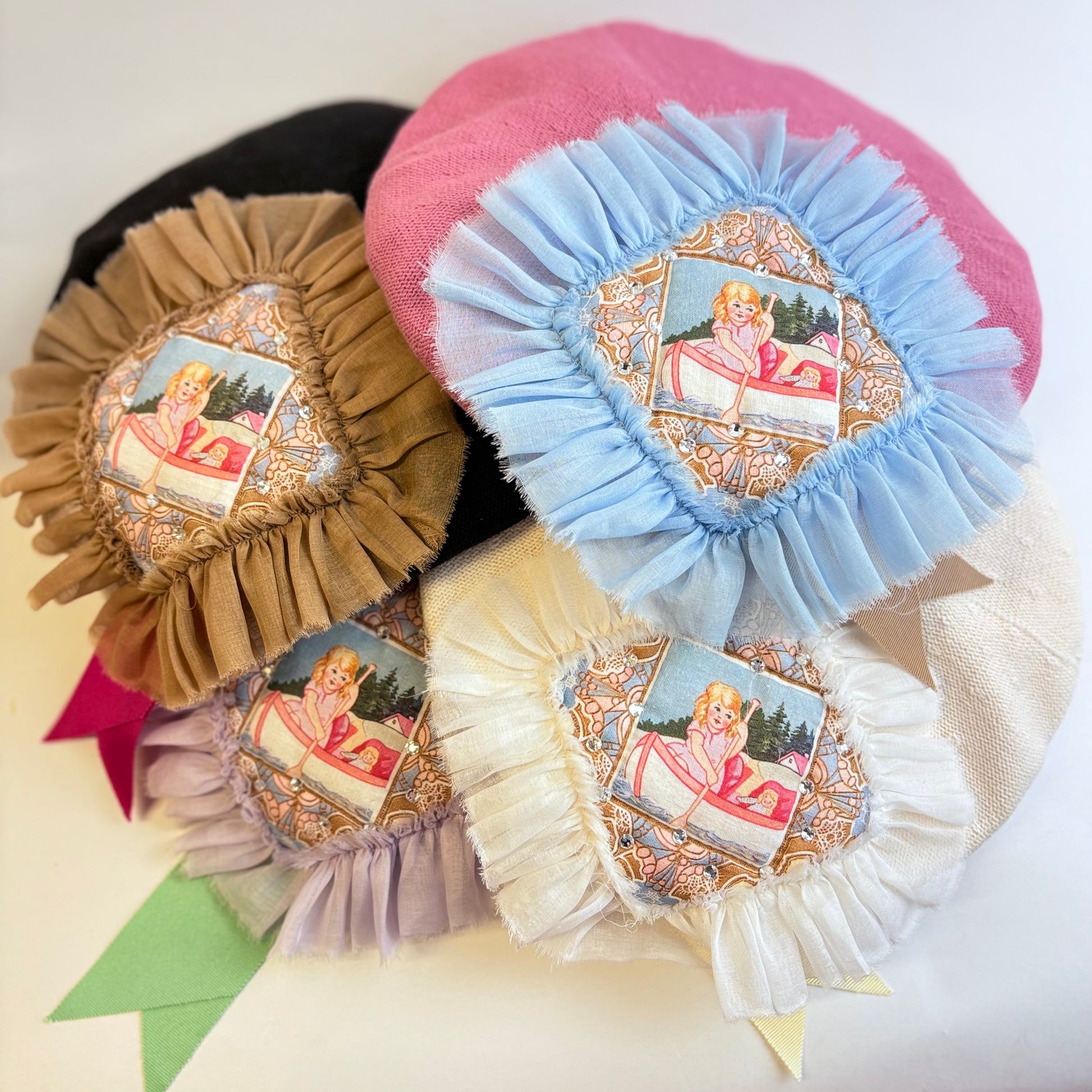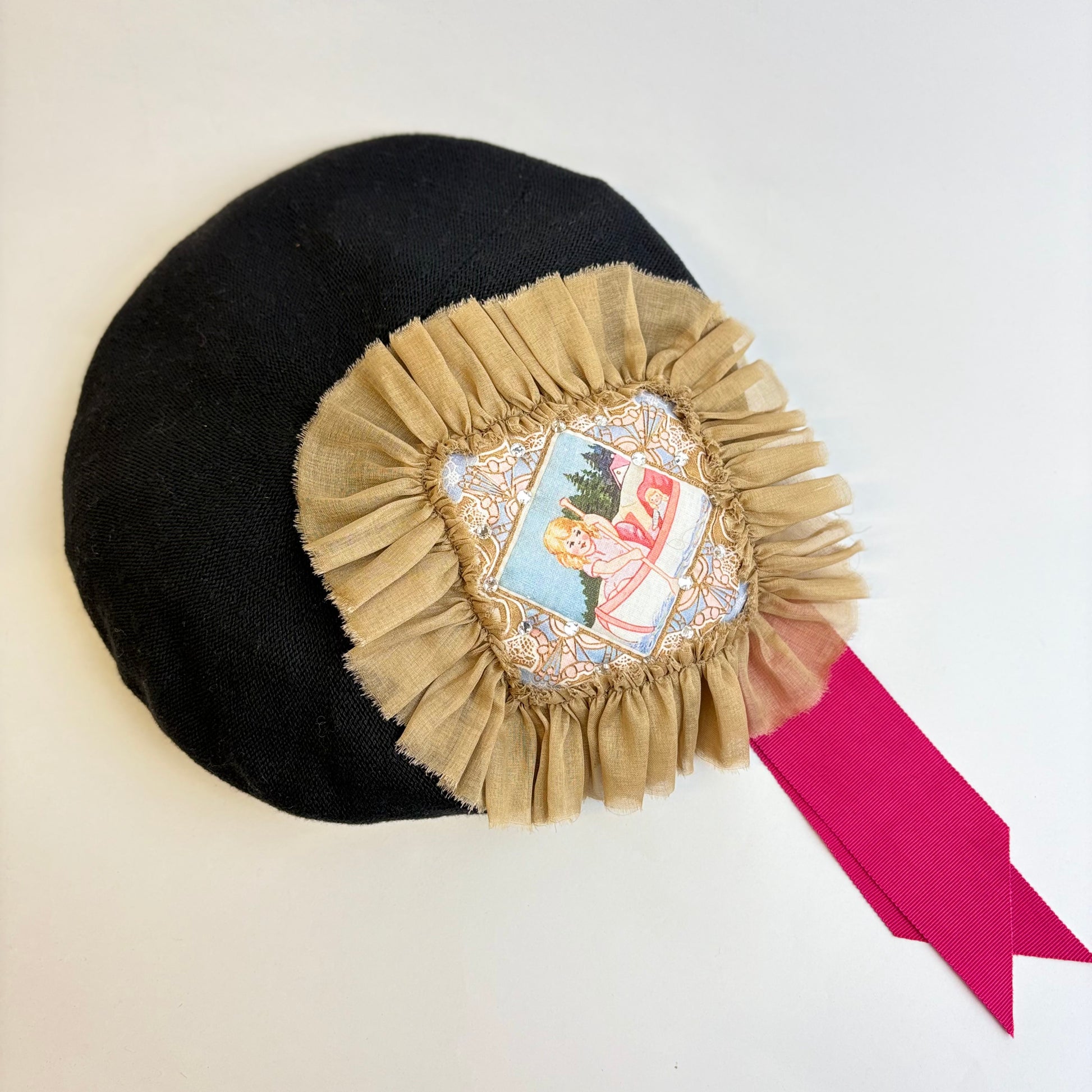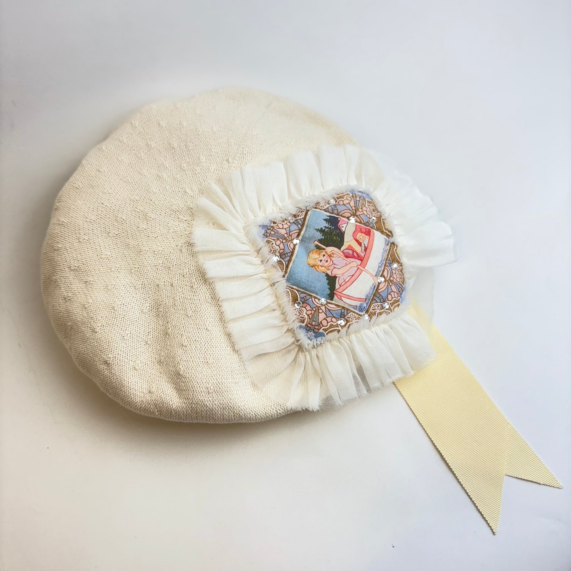 アンティーク調のモチーフアップリケが目を引く、クラシカルな雰囲気漂うコットンベレー。軽やかなコットン素材は春夏シーズンに最適で、ノスタルジックなデザインがどこか懐かしさを感じさせます。装いに取り入れるだけで、トレンドを押さえつつも個性的で愛らしいアクセントに。シンプルなスタイルに合わせれば、華やかな印象をさりげなく演出できます。クラシックな小物がお好きな方にぴったりのアイテムです。