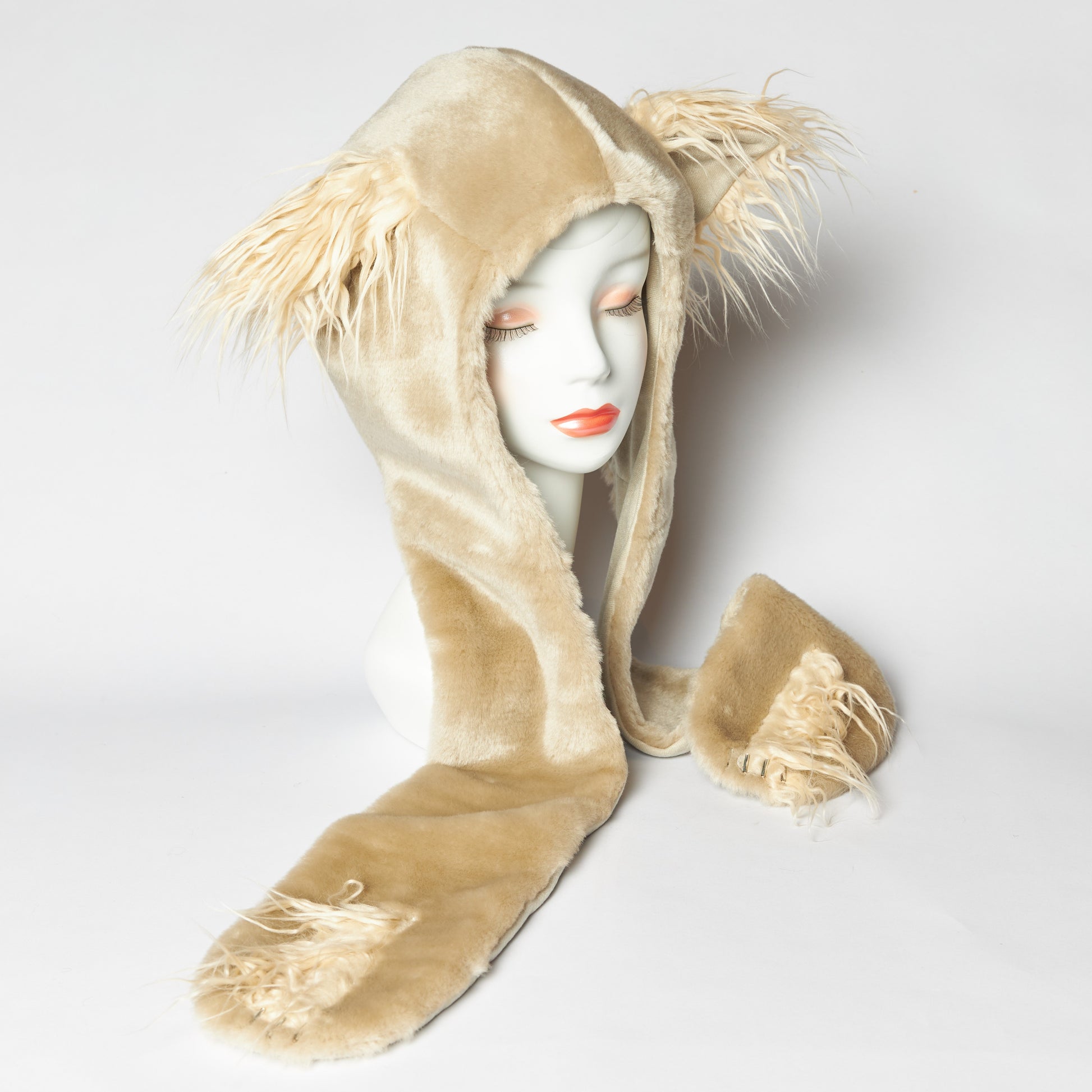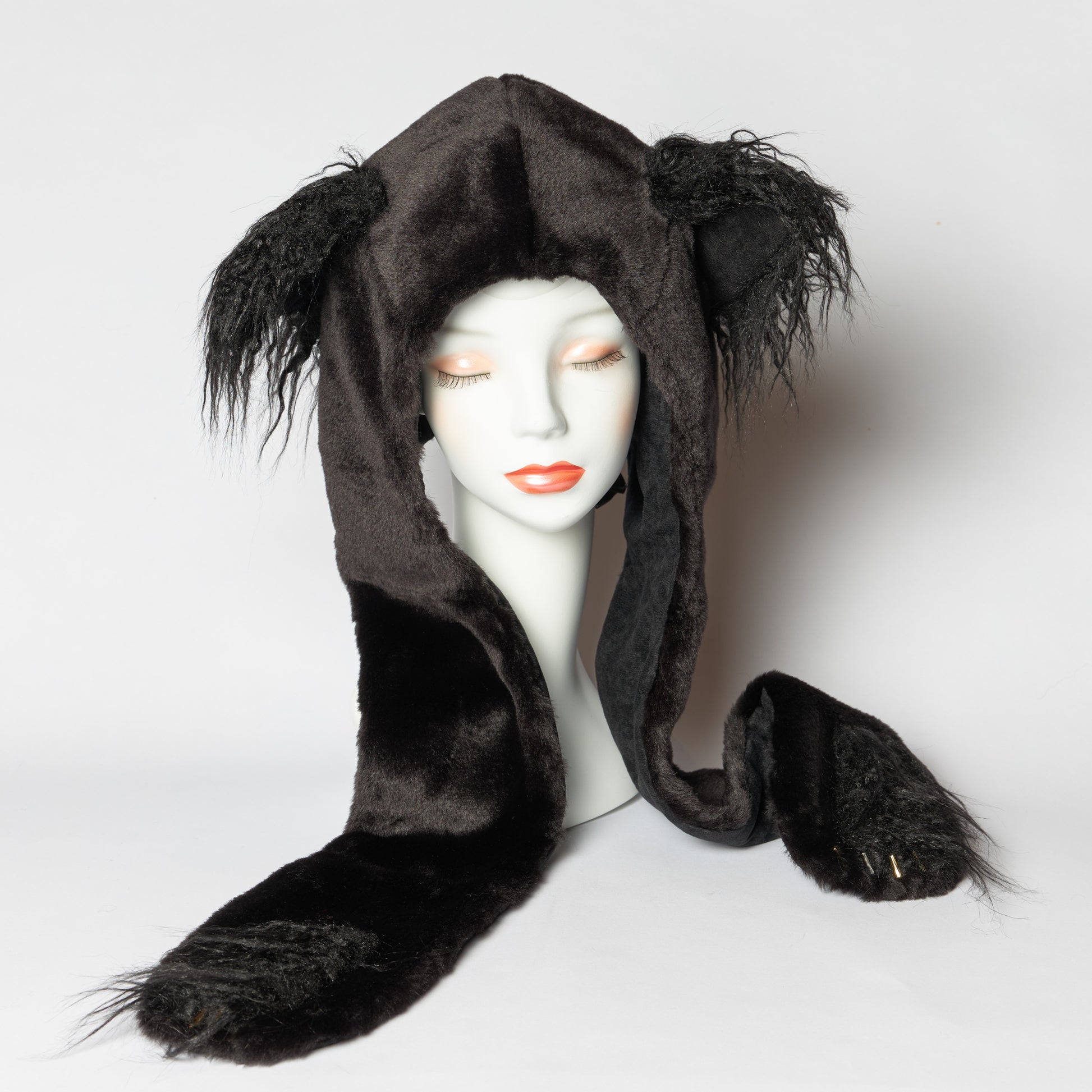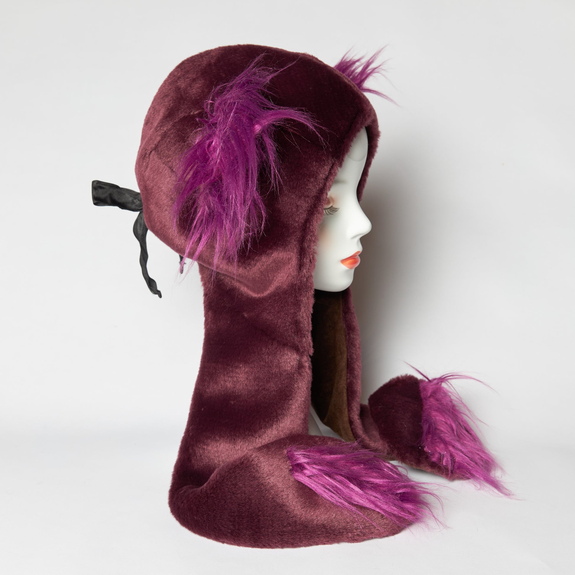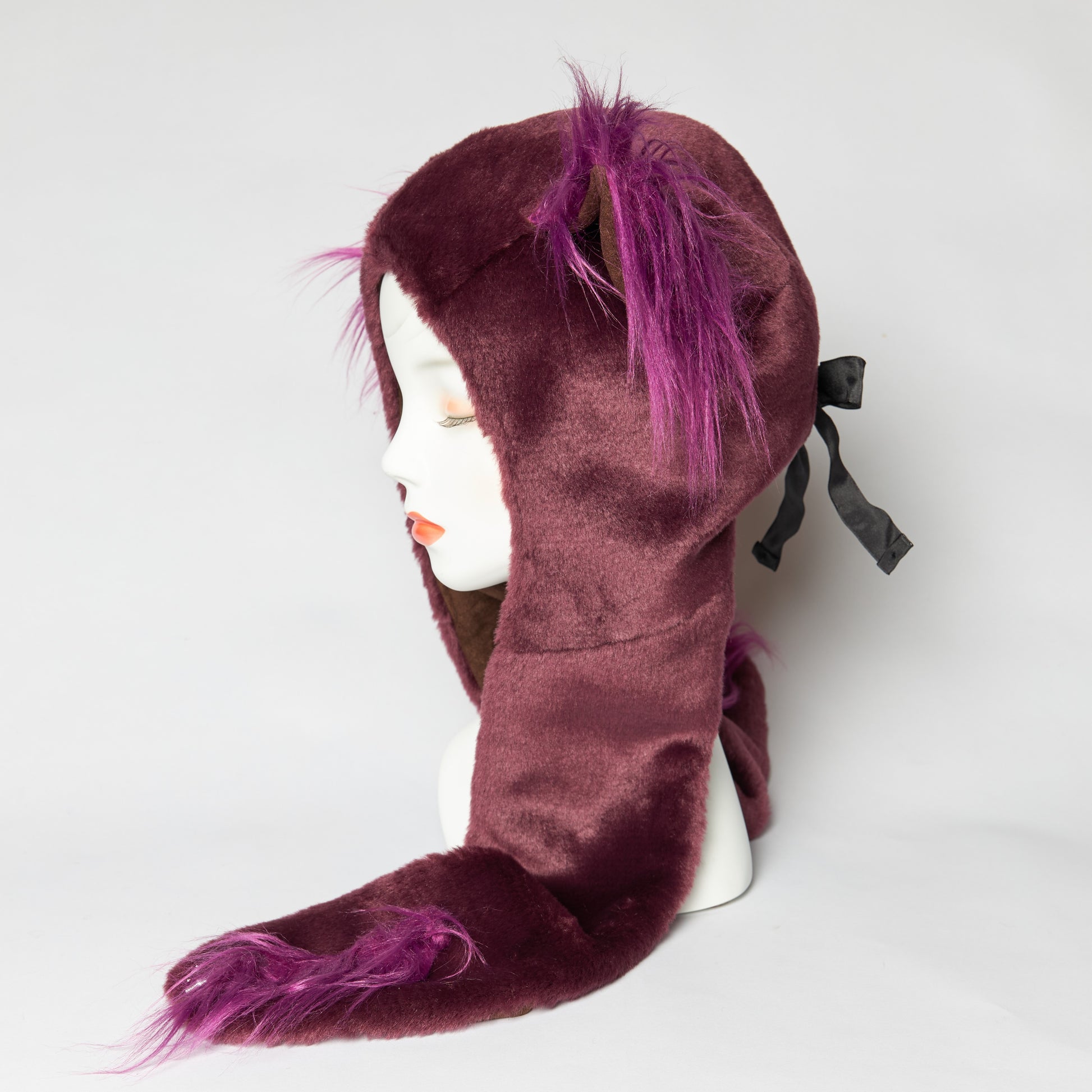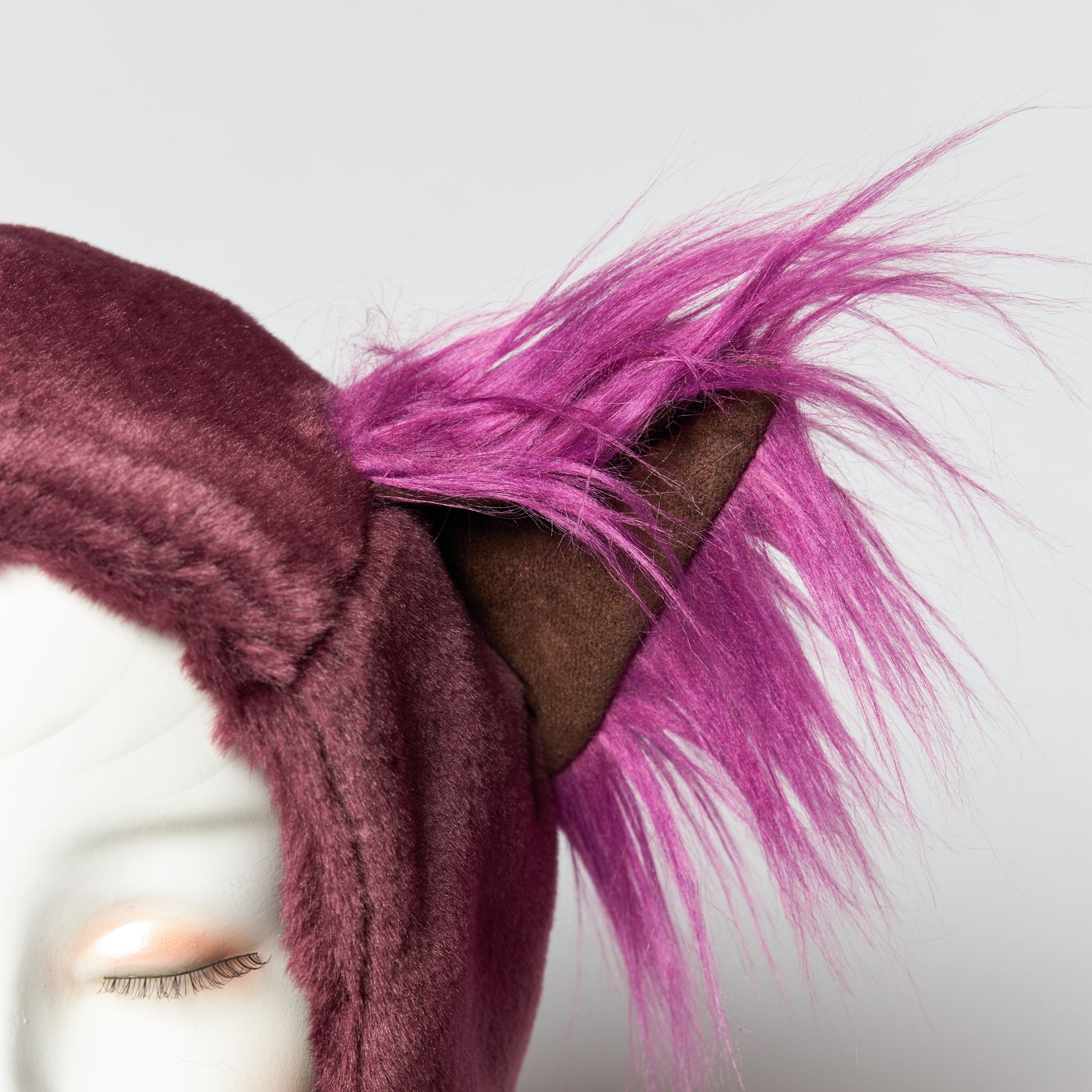 毛長のファー耳でワイルドに。耳付きでもかわいくさせないというテーマのフード。後ろにおろしてフードとして使ってもかわいいです。