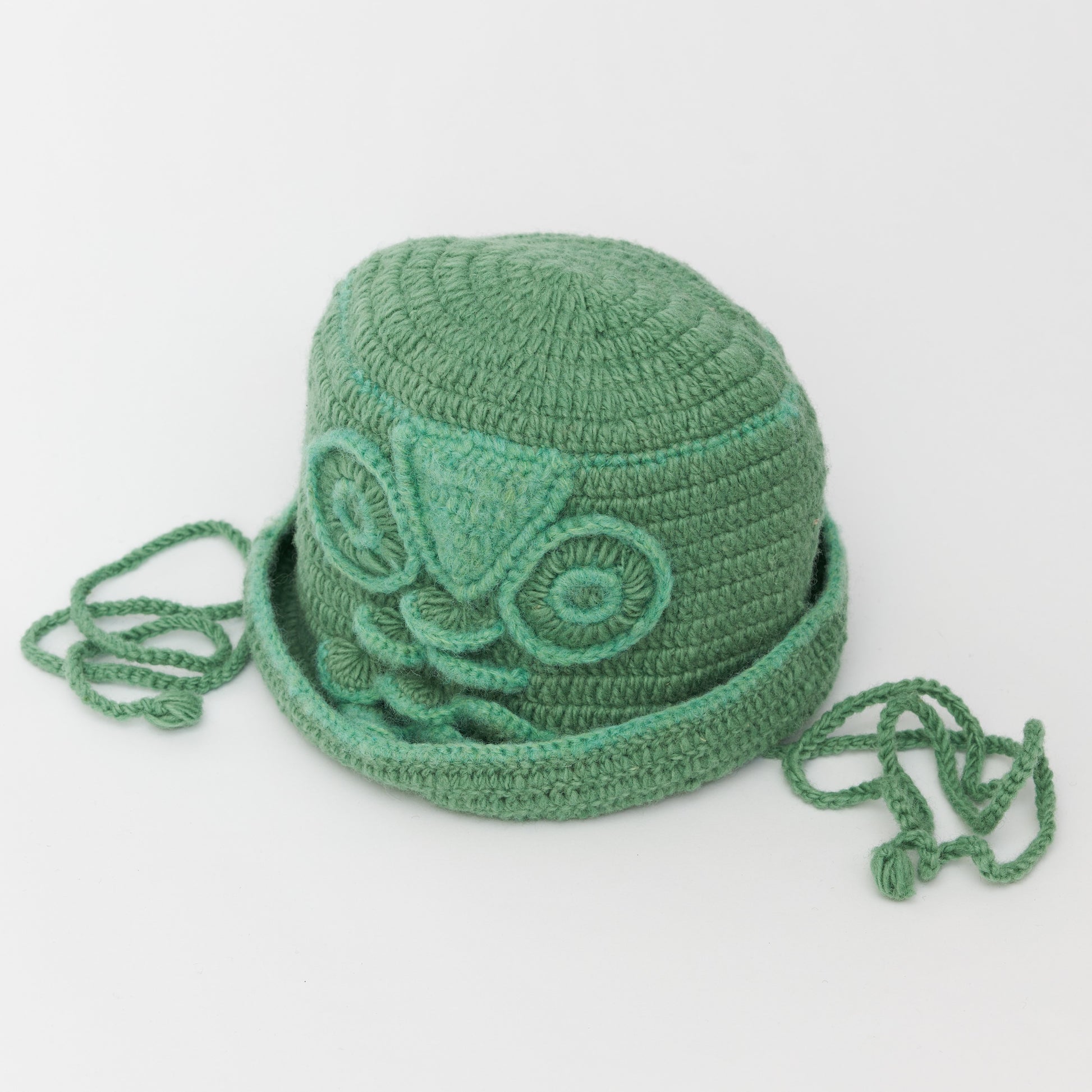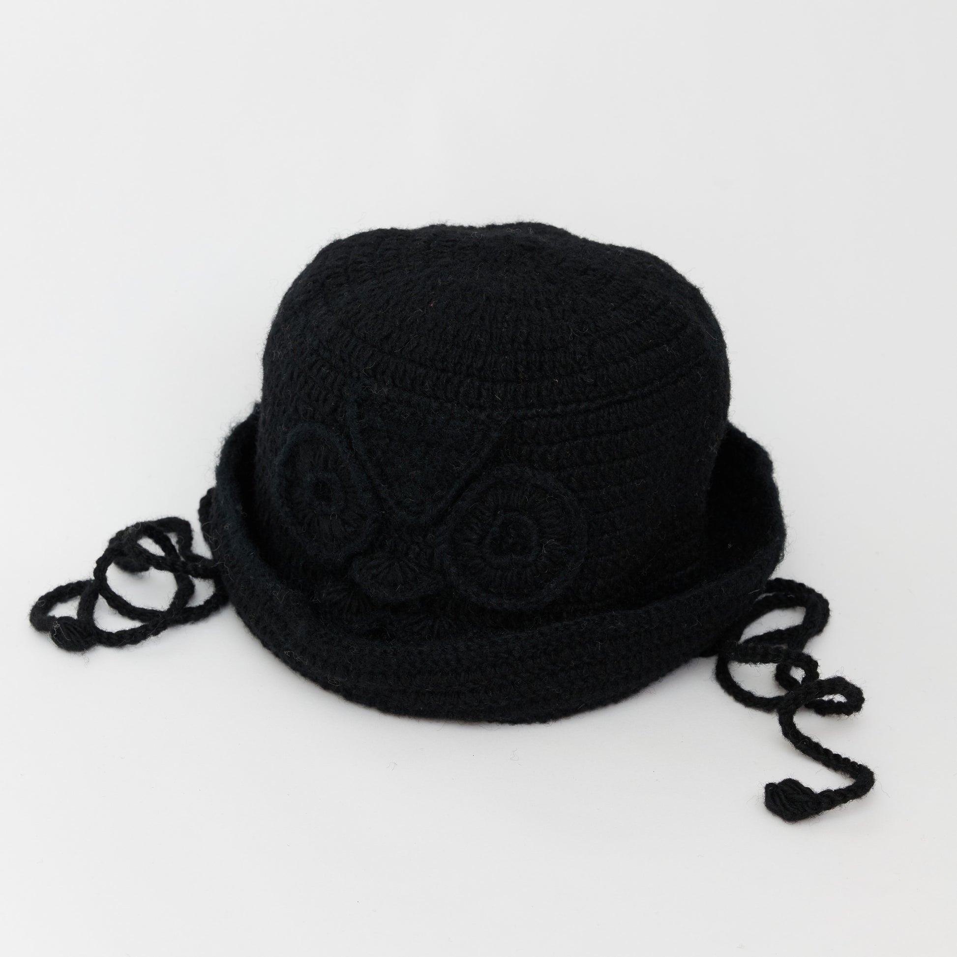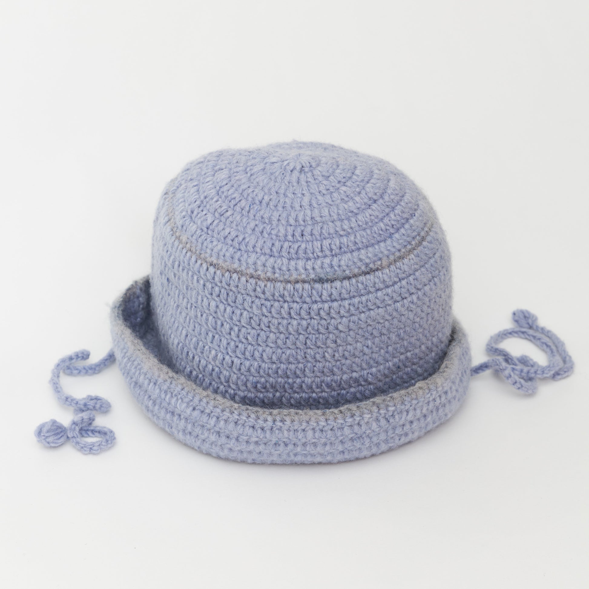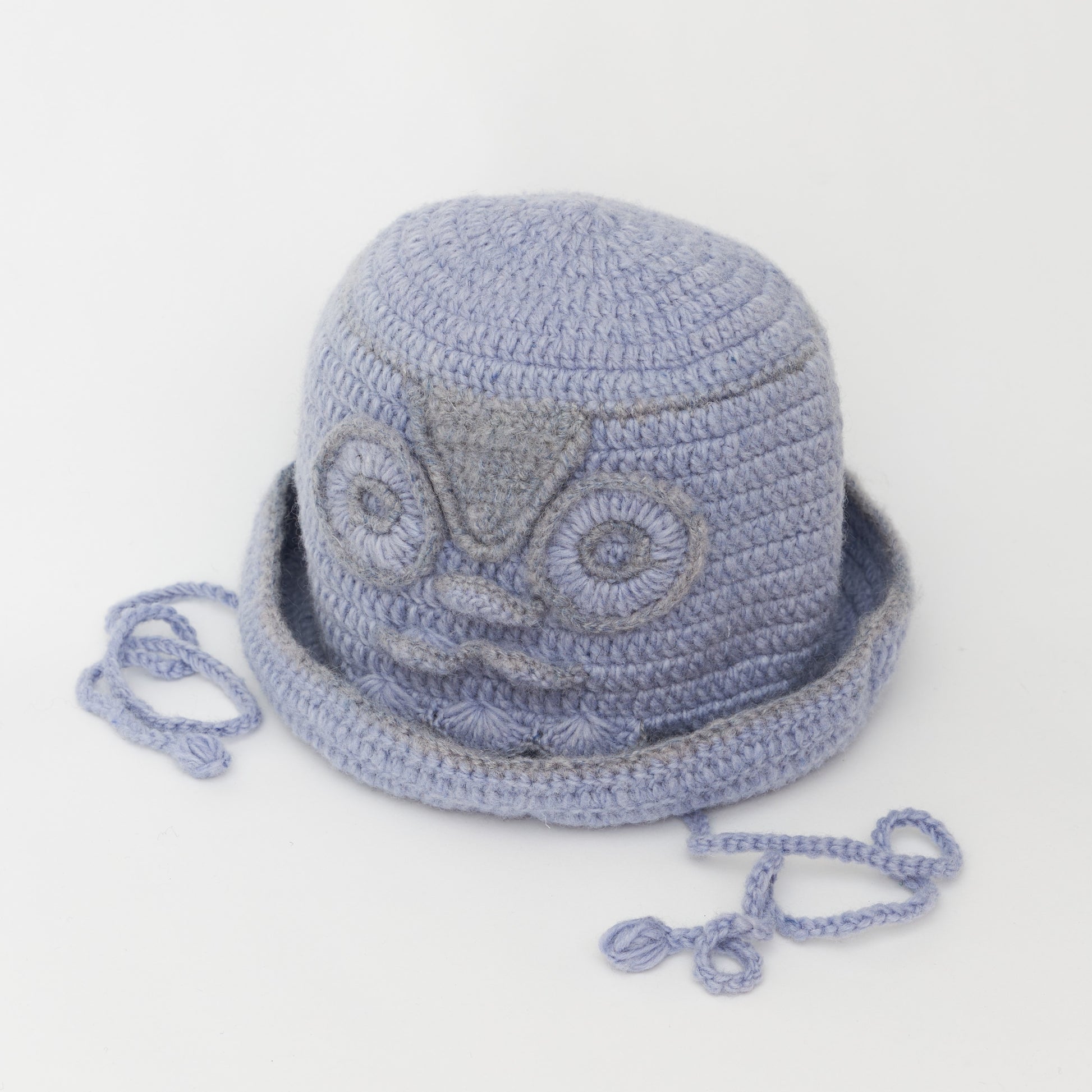 他に、ブリムをクルクル折り上げてかんかん帽の様なシルエットを作っても可愛いですね。 サイズ調整とアクセントになっている紐を内側にしまって、フクロウの顔を横にして被っても素敵です。