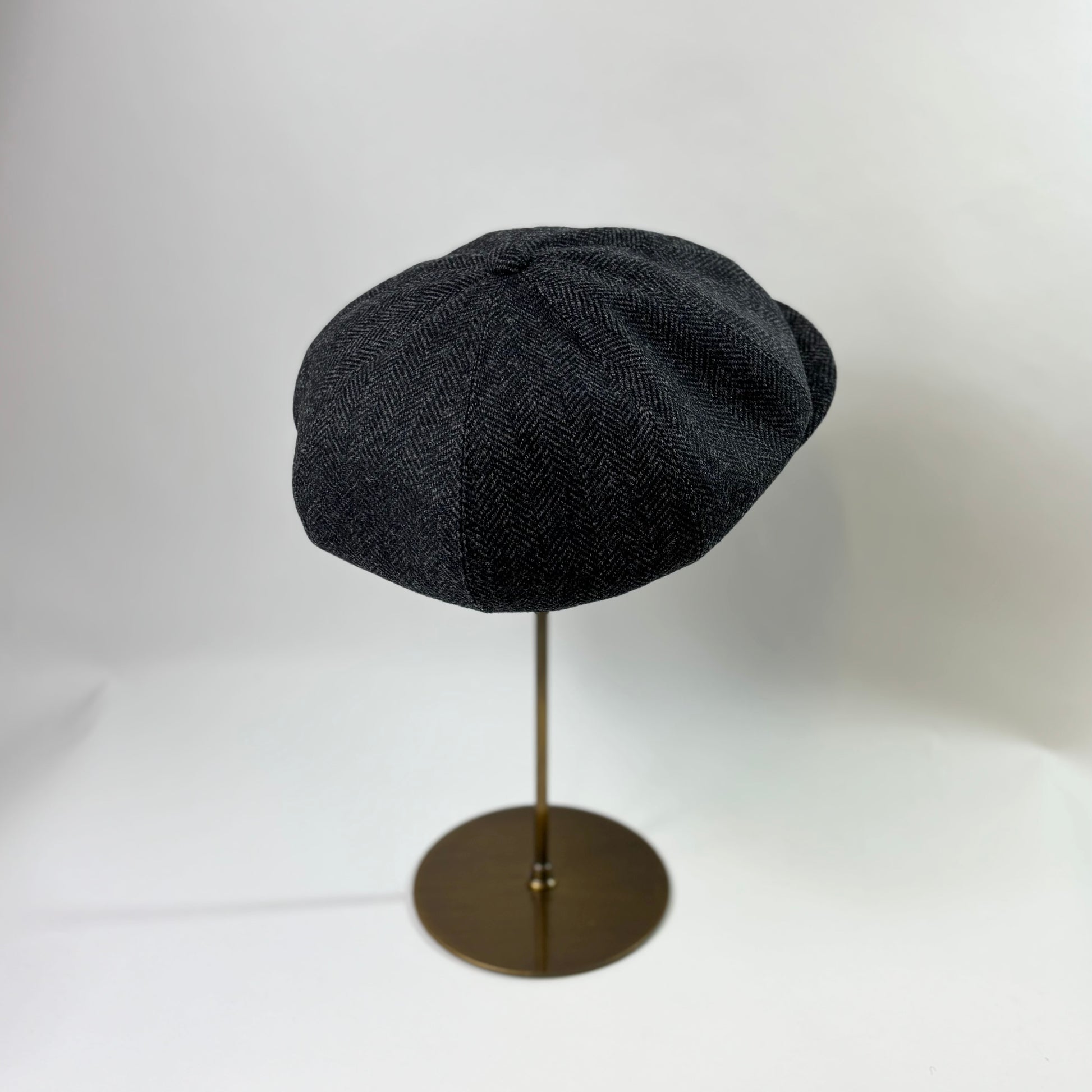 ブリティッシュウールを使用したニュースペーパーボーイキャップ。 カラー:GRY,BRNはヘリンボン。 カラー:BLKは綾織のブラックを使用しています。