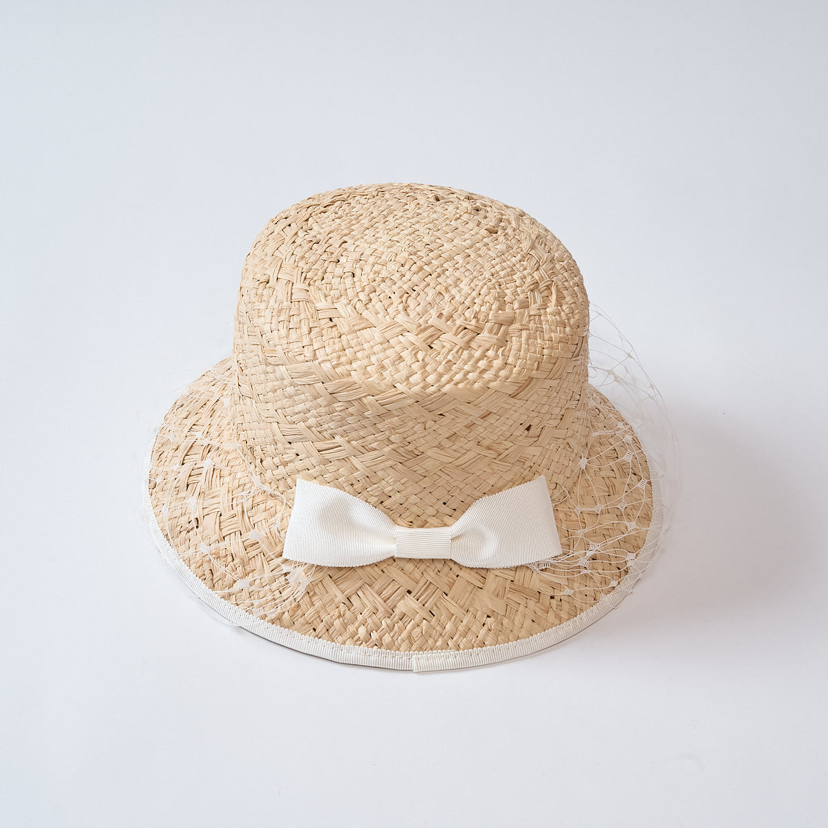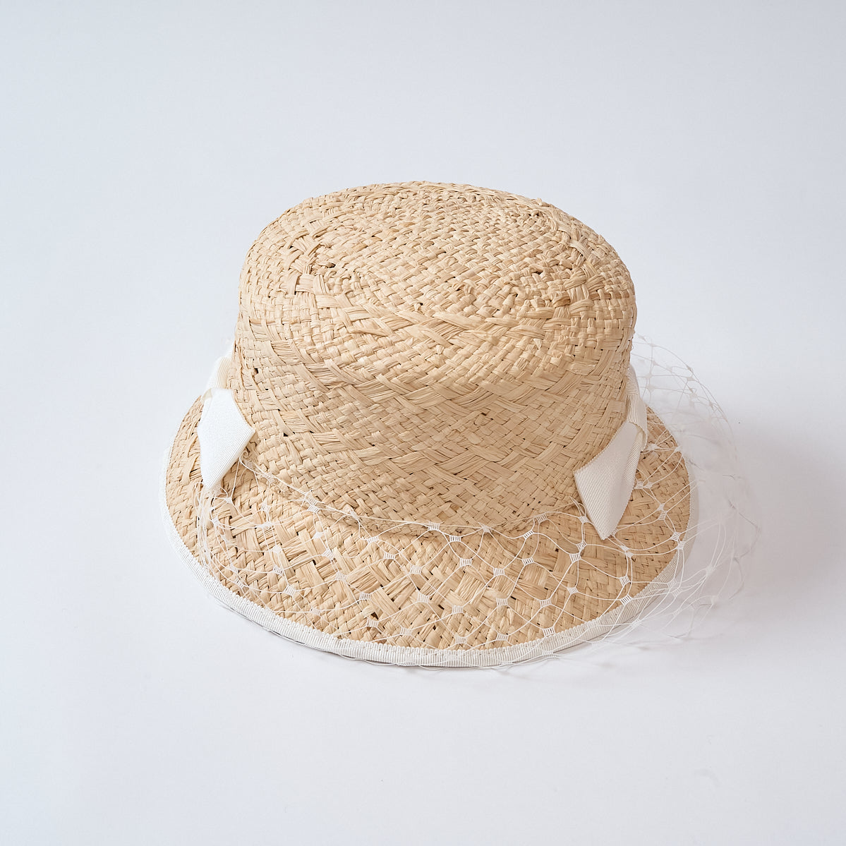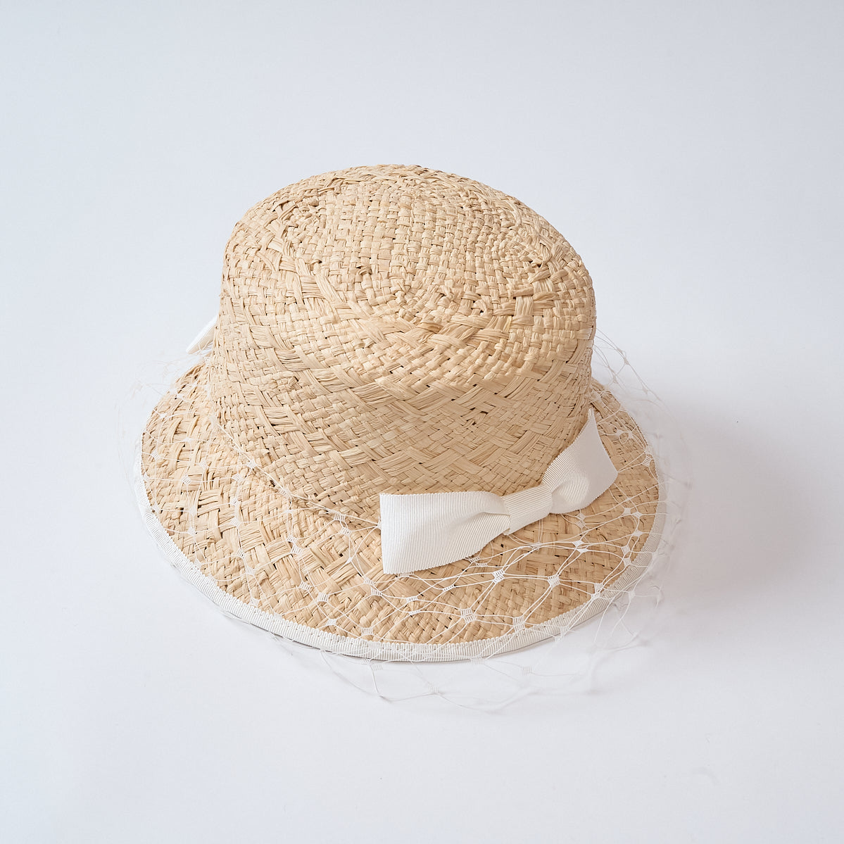 ラフィア織りのバケットハット。