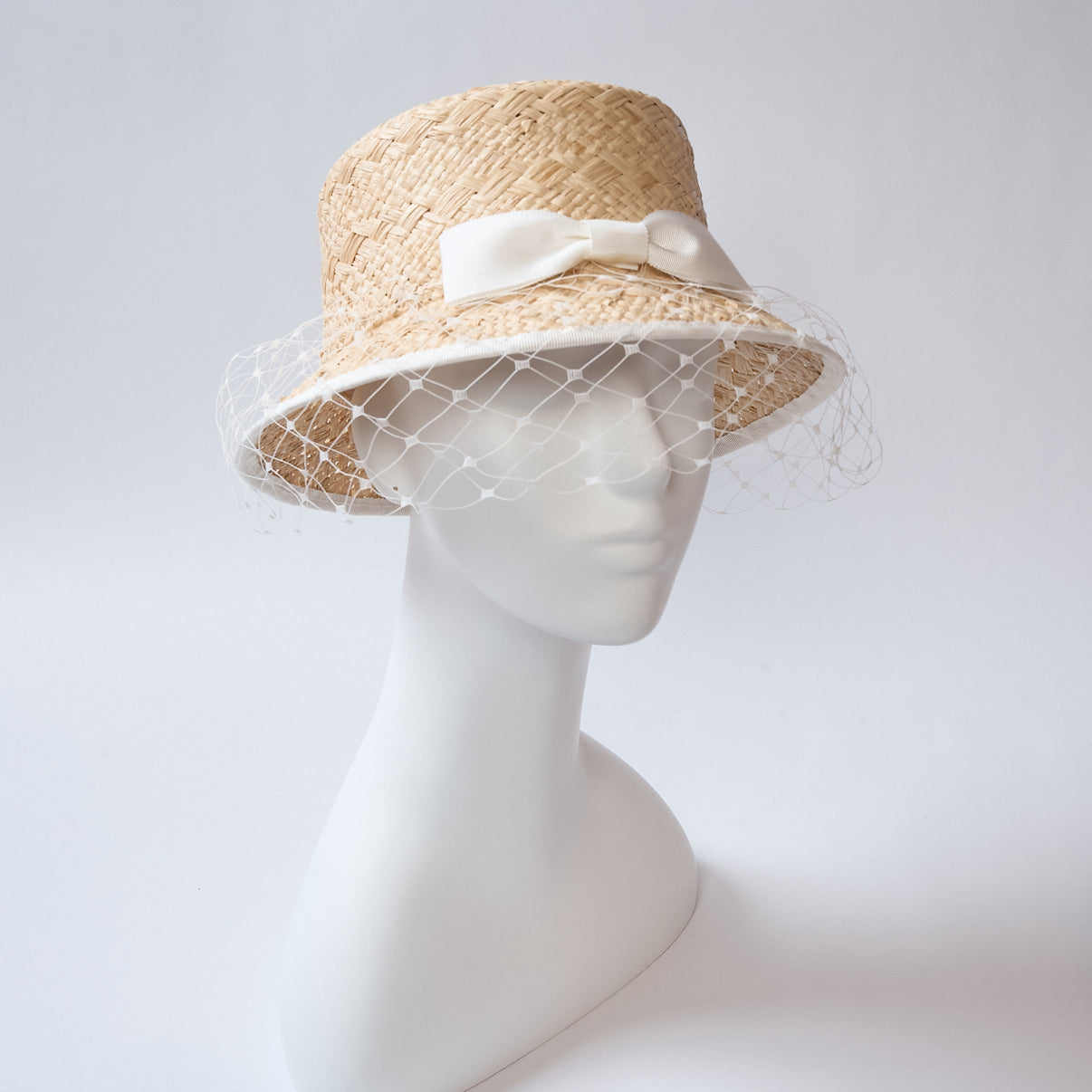 クリーム色のリボンとヴェールに包まれた、