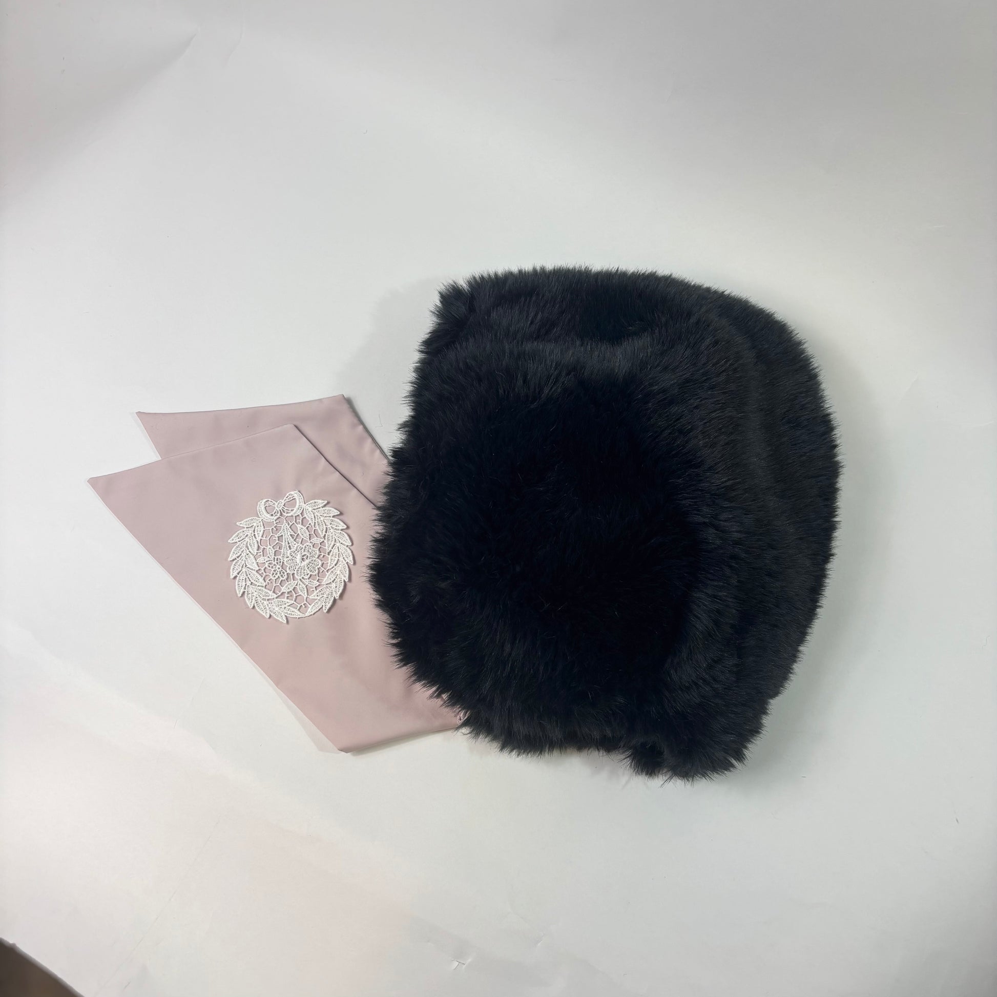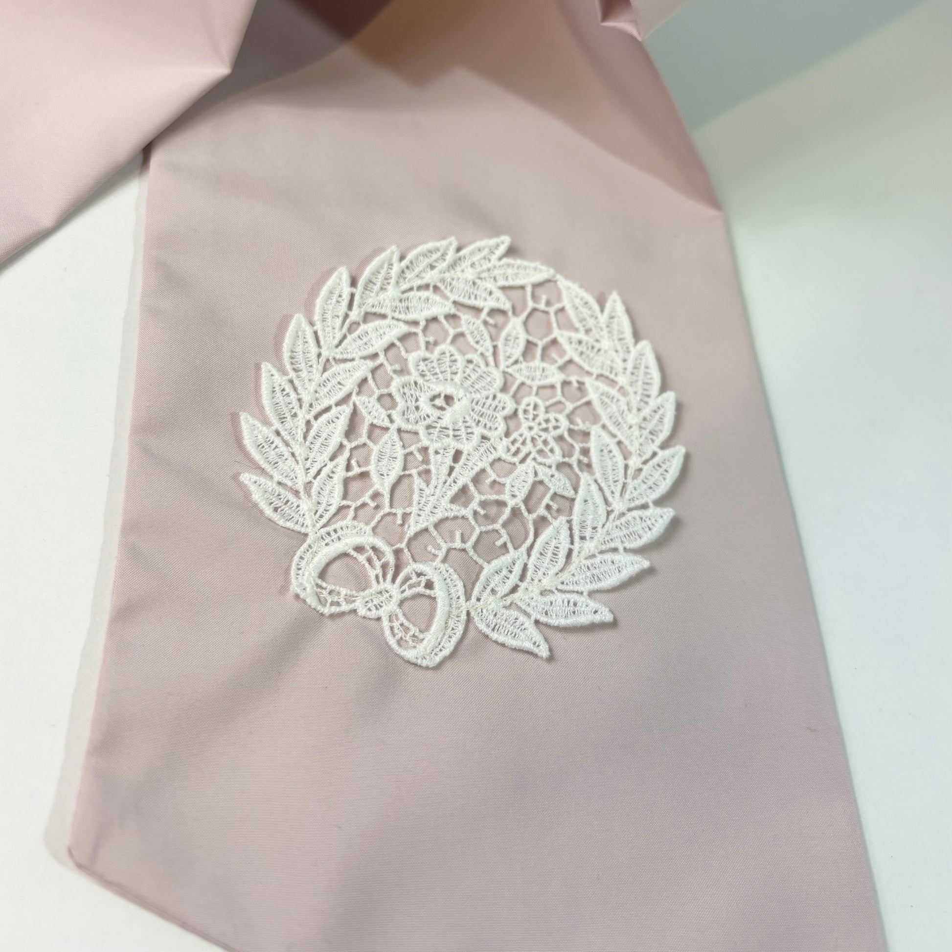あご紐にはリボンの刺繍モチーフをあしらい、さりげないワンポイントとして女性らしさをプラス。